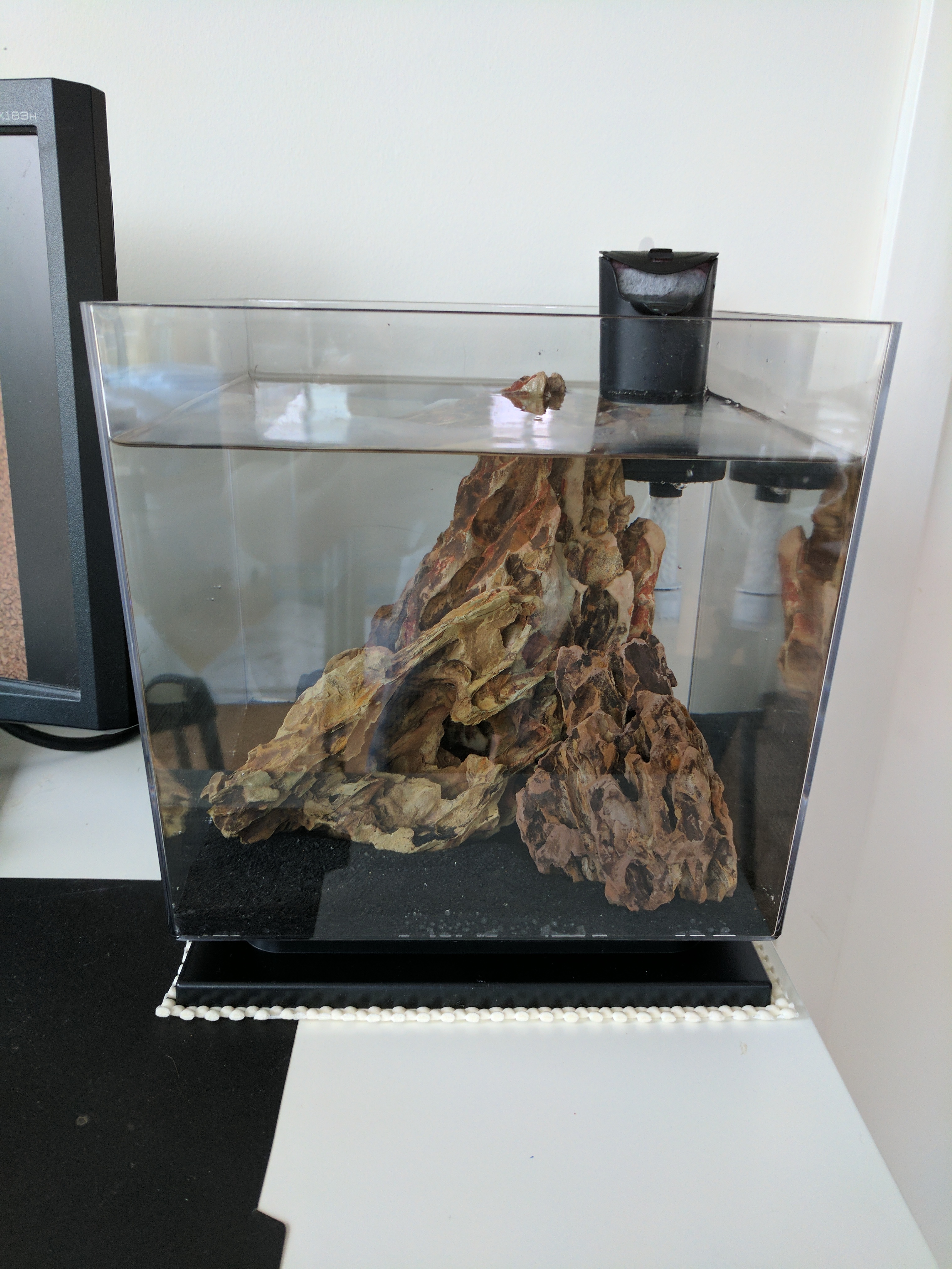 @KenP It's harder to see the hole in the rock from the photos but I tried to make it the focal center of the tank. I actually played around with having it the way you suggested the only thing about that is that the crevice that the hole forms will mostly likely be where small shrimp will hide and if i face it the other way I won't be able to see it. At this angle I might not get the best hole but I still see the hole and i get to basically see into the cavern it makes more easily.