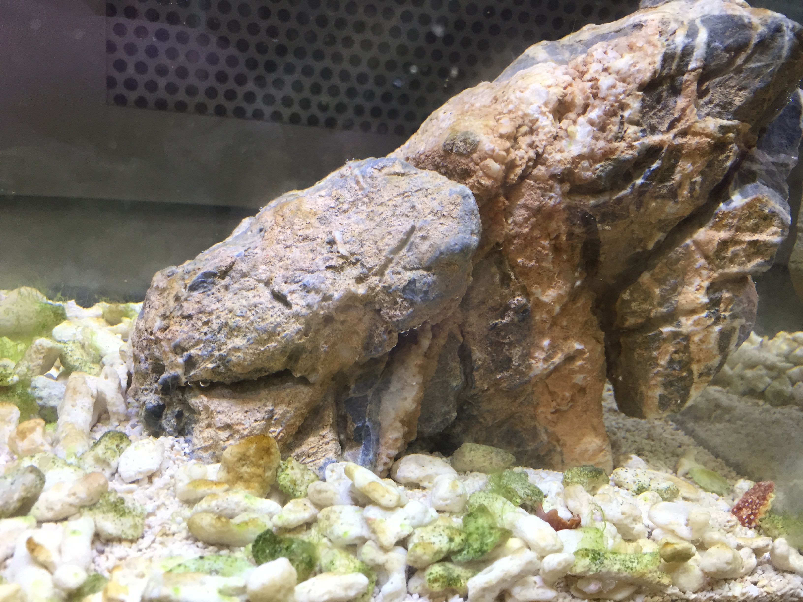 There is lots of growth on the pieces of coral which came from a tank at my local aquarium store, however nothing seems to have grown on the large rock yet.