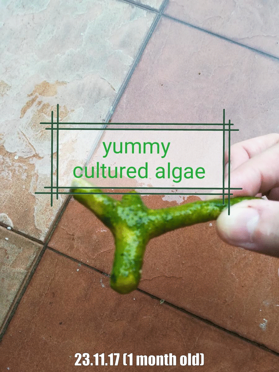 Looking at one of the cultured algae started to turn more darker green. It only took 6 days there were biofilm around. So today i decided to move it to a rack just right infront of my door and added premix brackish until it reaches about 1inch from the top edge.