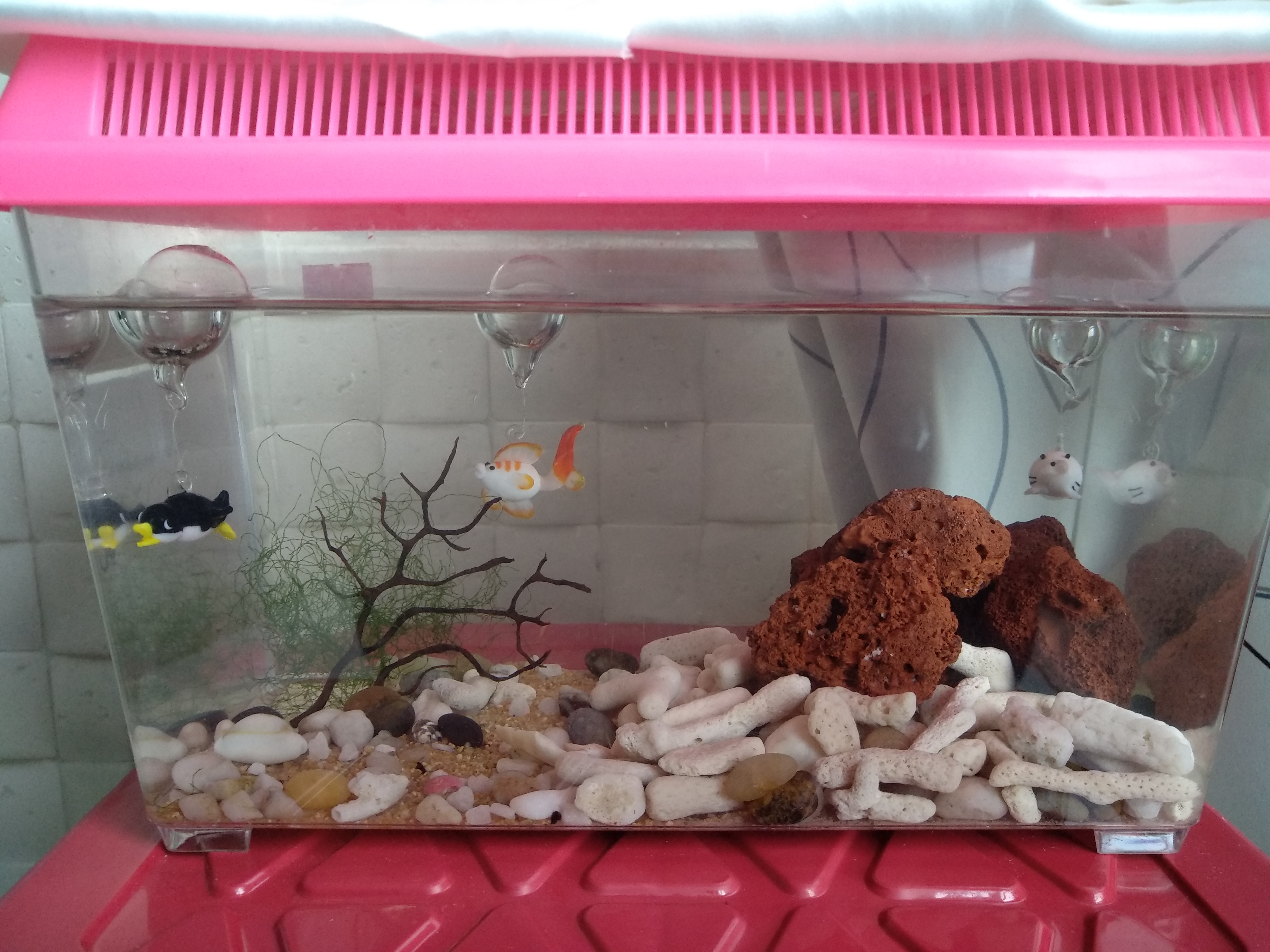I'm planning to add in a piece of red coral and add in Lava rock (currently do not have lava rock). I understand that there's kinda no particular measurements of how many extra coral and lava rock should add. But I just think it's logic thinking not to crowded the small half gallon tank right. How much should I put in the lava rock.