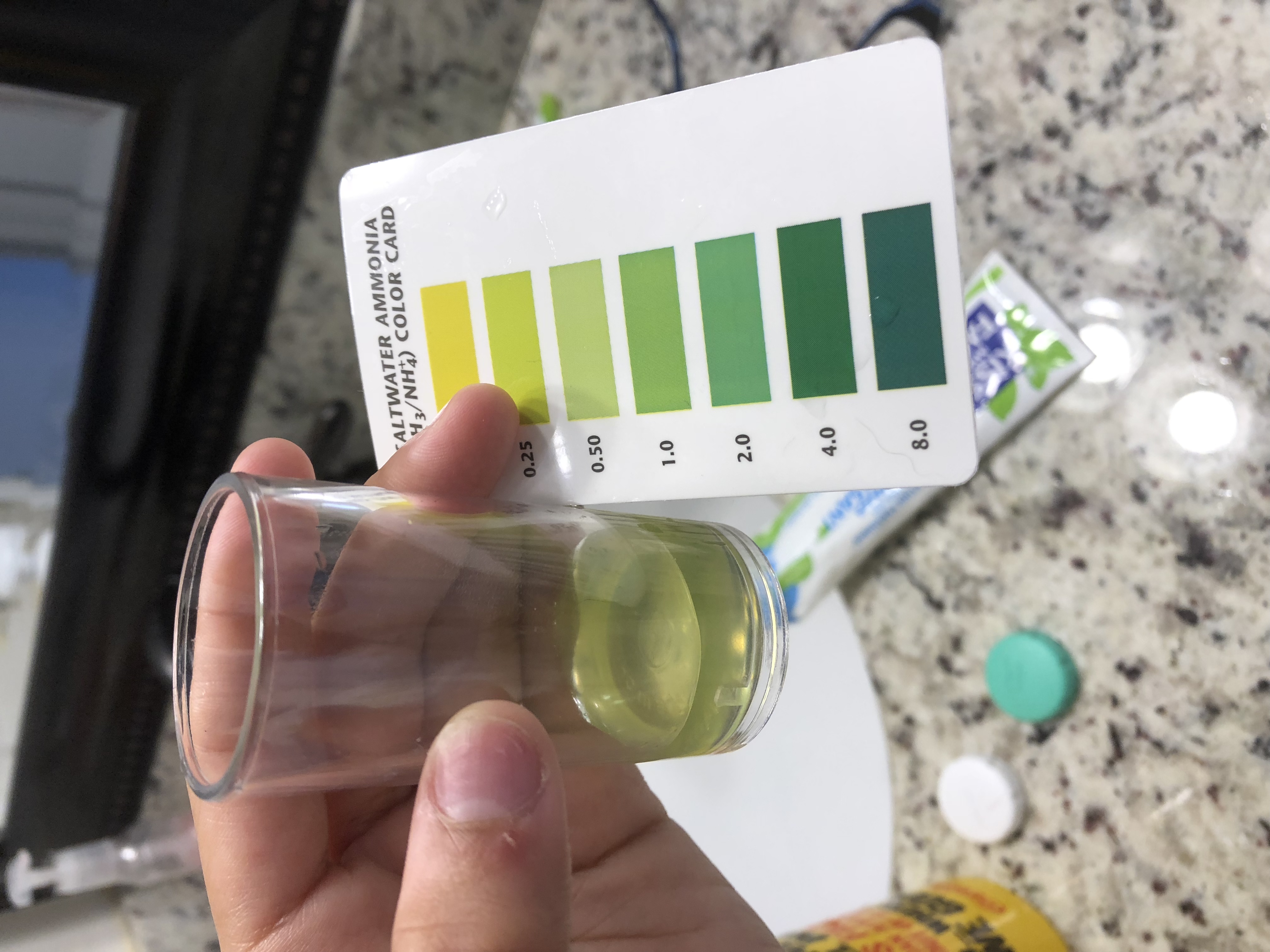 OK so actually I did a bit more reading and it turns out you can do an ammonia about 48 hours after prime and it will come out accurate. You just cannot do it right away. OK. So this is a quick stress post: just checked on my tank again. Shrimp still pink, sitting around. Eating stuff. But I have four snails at the water line )-: This is incredible stressful. Do not know how you experienced keepers do it. What are some signs of shrimp stress that mean I should do a water change right away?