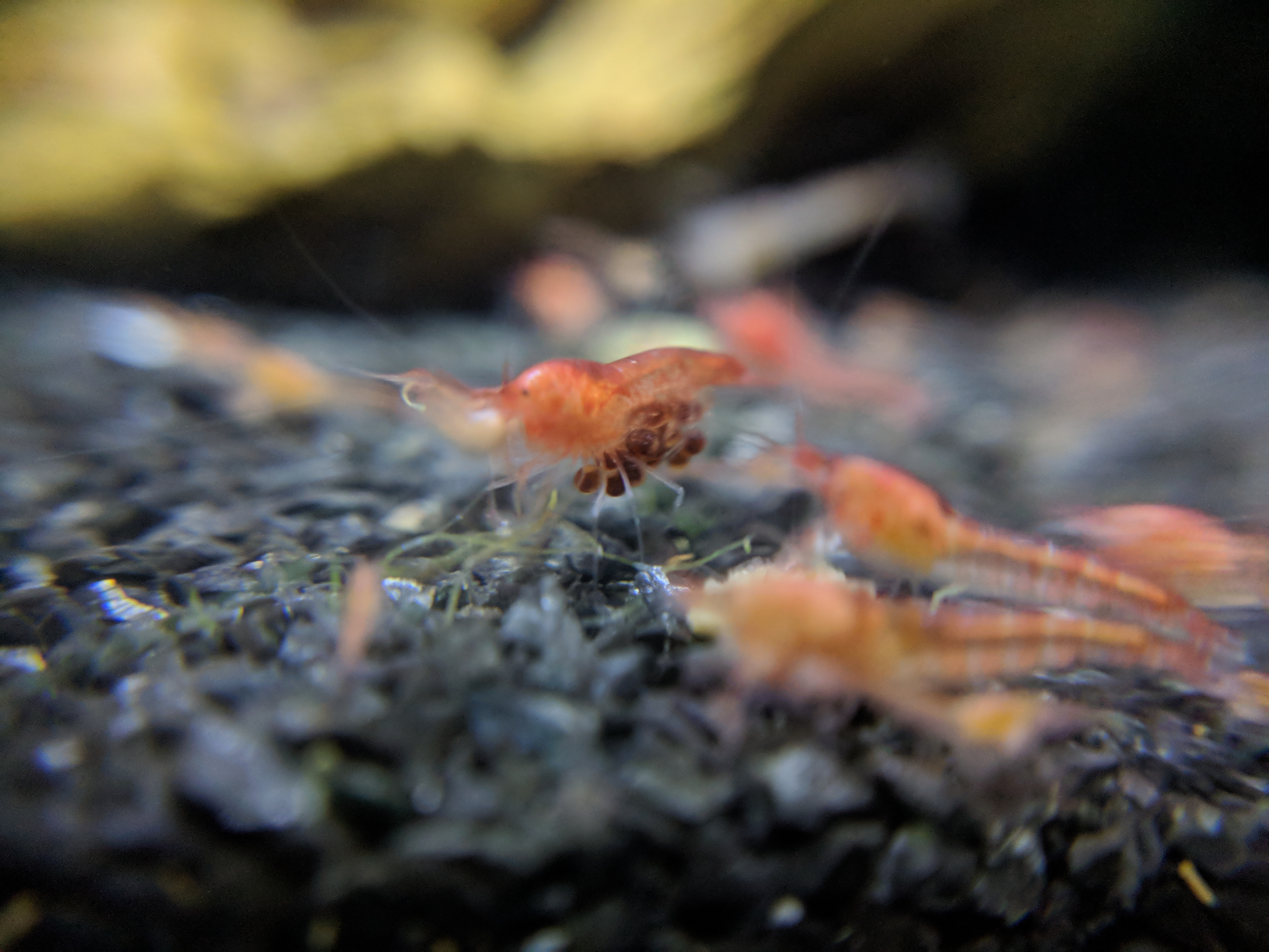 So spring really did the job and i had over 7 female shrimps that produced eggs and at least 30 larvae now swimming about. I still have 2 more females that were late to the party and seem to be berried with healthy clutches. I've always loved seeing the photos so I want to give back and share some of the best ones that I've managed to capture.
