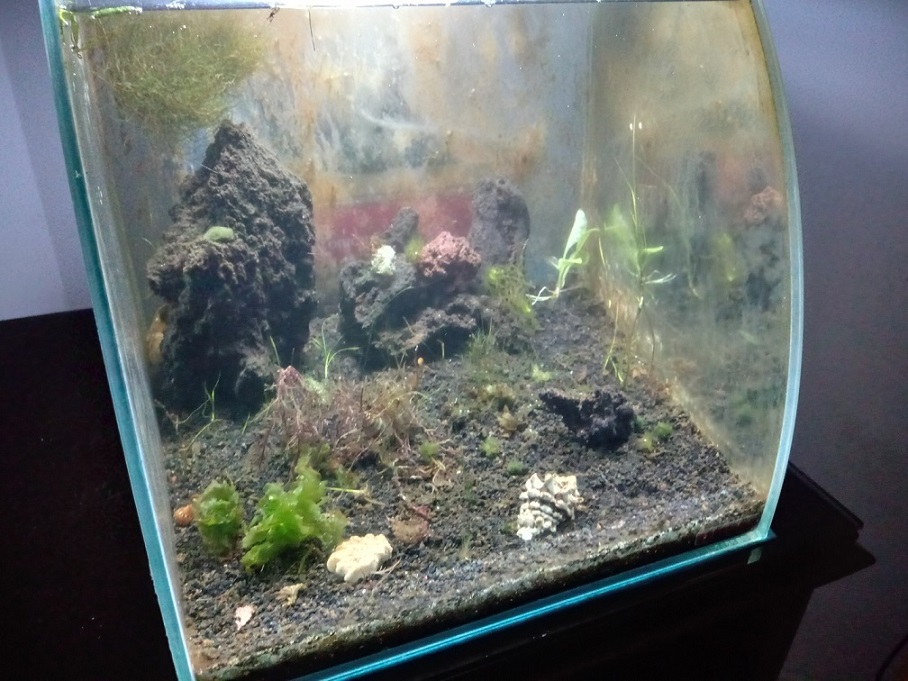The tank its running since 4 months now, I only feed the shrimps once in all this time, a tiny pellet that the shrimps and snails eat in few hours. The plankton abundance I think its because I used "live" ocean water directly from the Atlantic and the tank its filled with microfauna. I have seen cyclops and ostracods feeding on the microscopic cloud of plankton