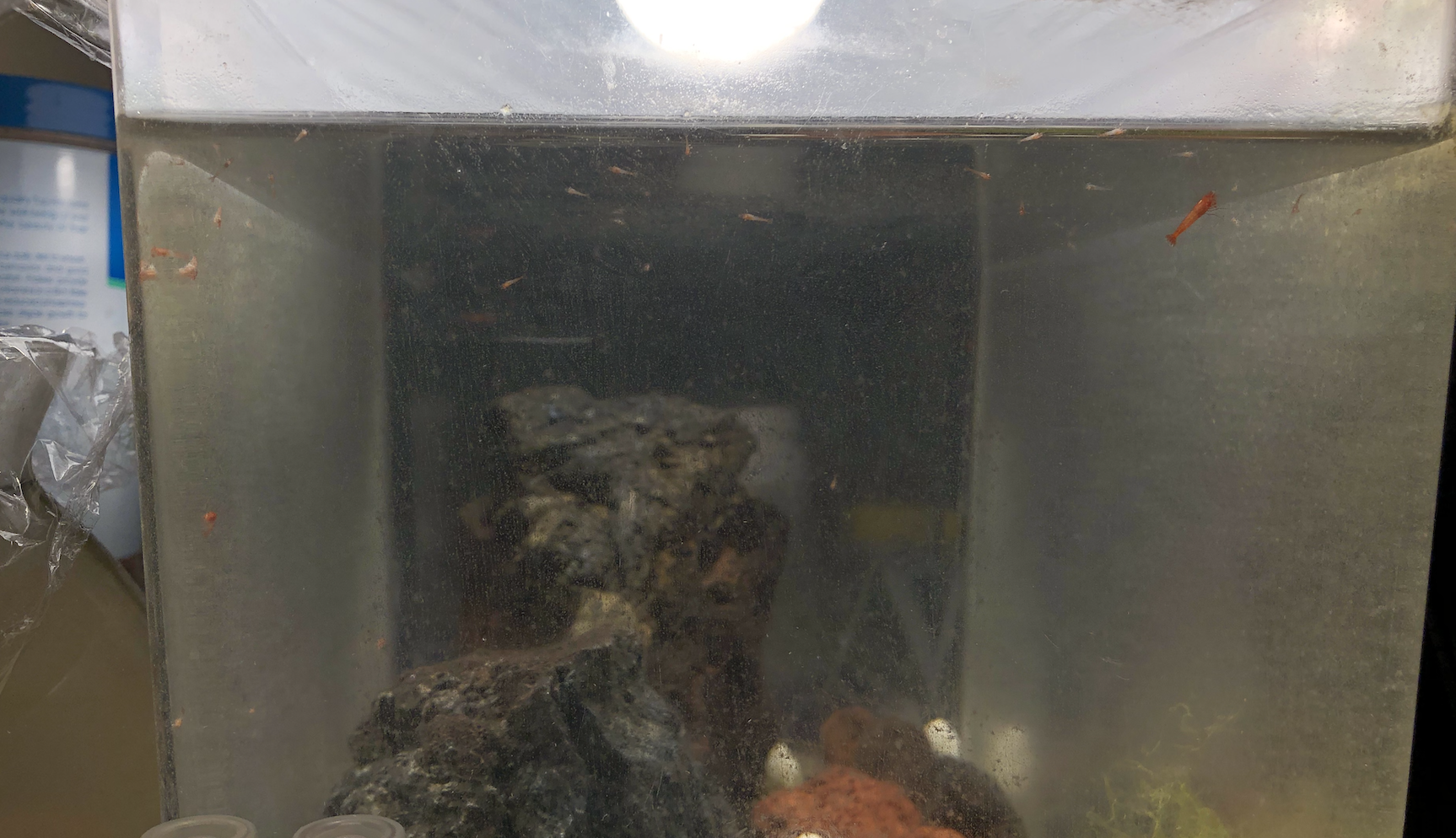 Now I believe the young ones are just used to chilling near surface since the spirulina powder was on the surface... The fact that I did a water change and they are still near the surface means it's probably not water/oxygen problems.