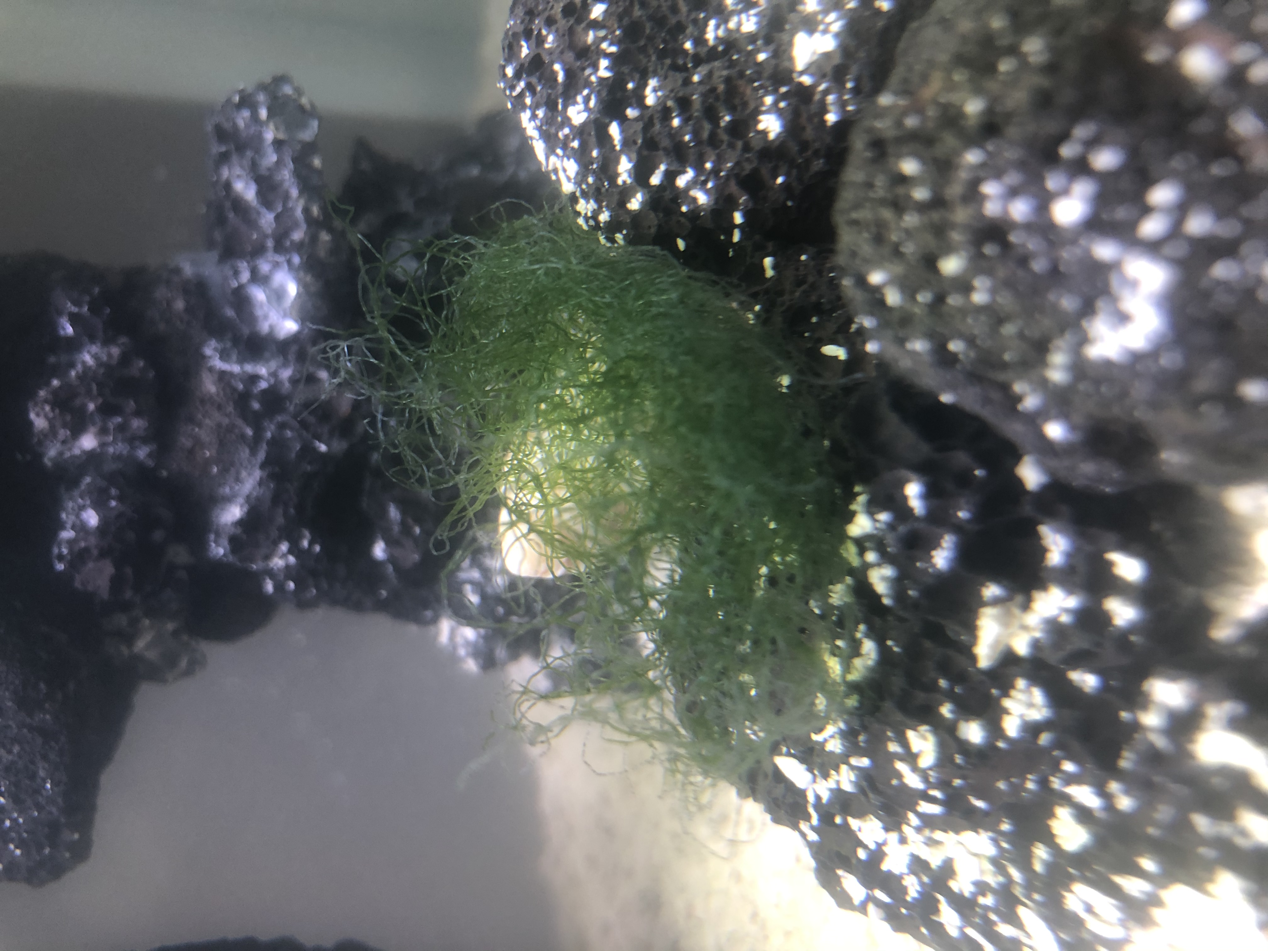 The moos ball is floating since years at the top and looks in not a great shape. It seems the lighting is too strong or the wrong wavelength, who knows.