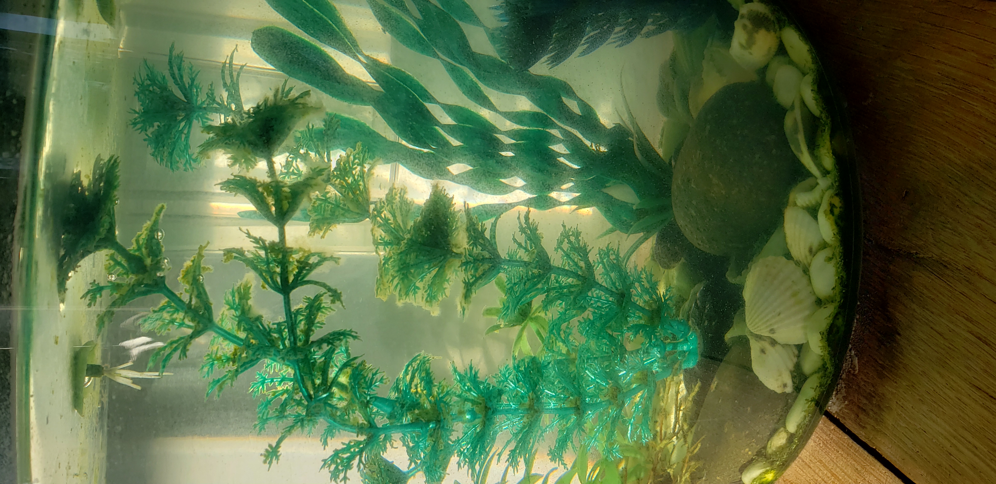 I am worried, Fred when I do see him, is brown not red. I am worried the plastic is slowly degrading over time in the brackish water. I have tested all other aspects of the water and it is fine. Thinking I should get some new plastic plants...thoughts?