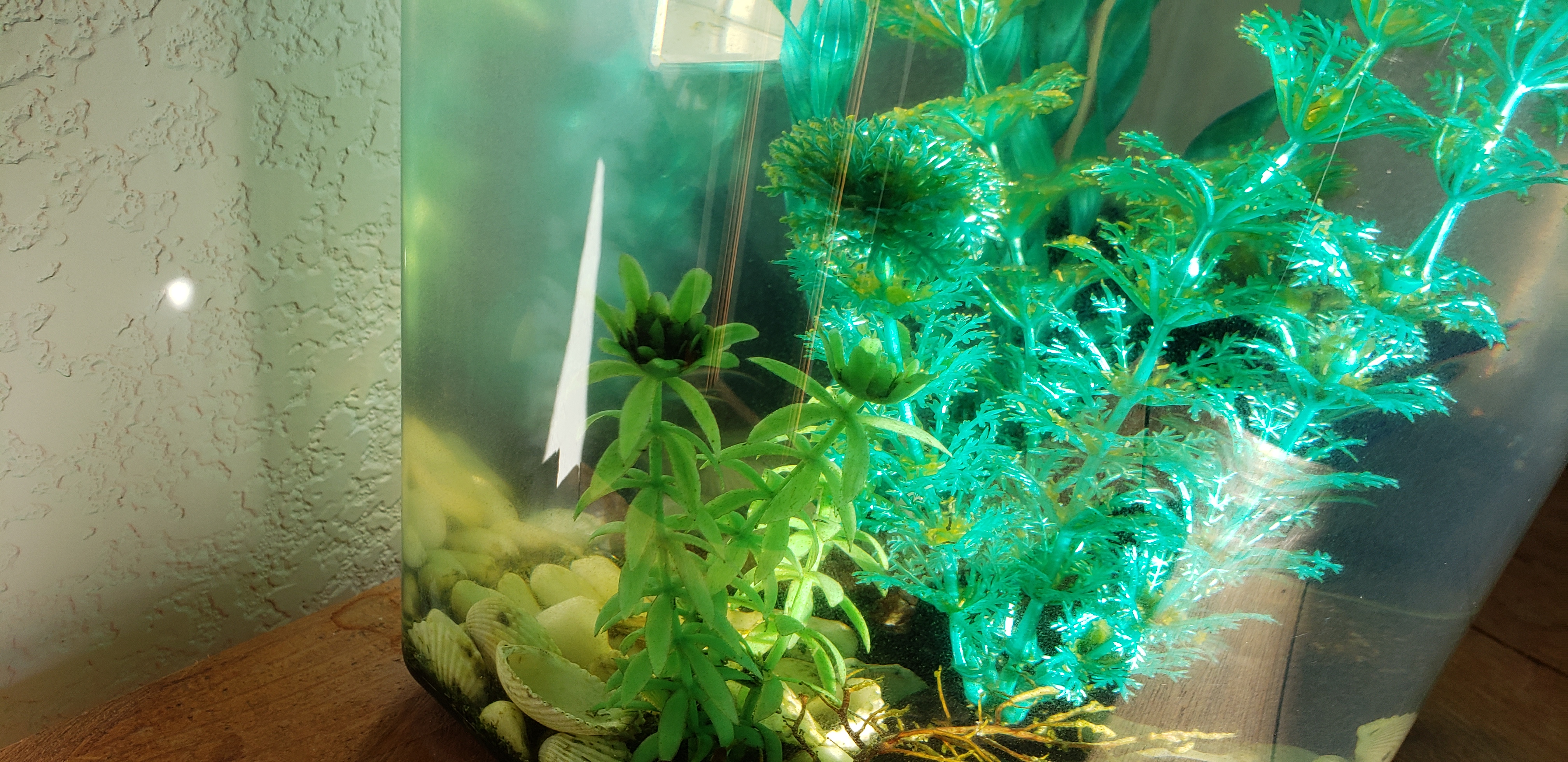 Remember Fred? He is doing well with his 2 snails. I have had him in a plastic tank for about 3 years now with plastic plants, real rocks etc. My question is with the brackish water will the plants degrade over time and leech chemicals into the water? Should I buy new plastic plants? If so, which brand does well in brackish water? Are there other decor anyone recommendations? Also, is the plastic aquarium okay with the brackish water over time? Thx!!!