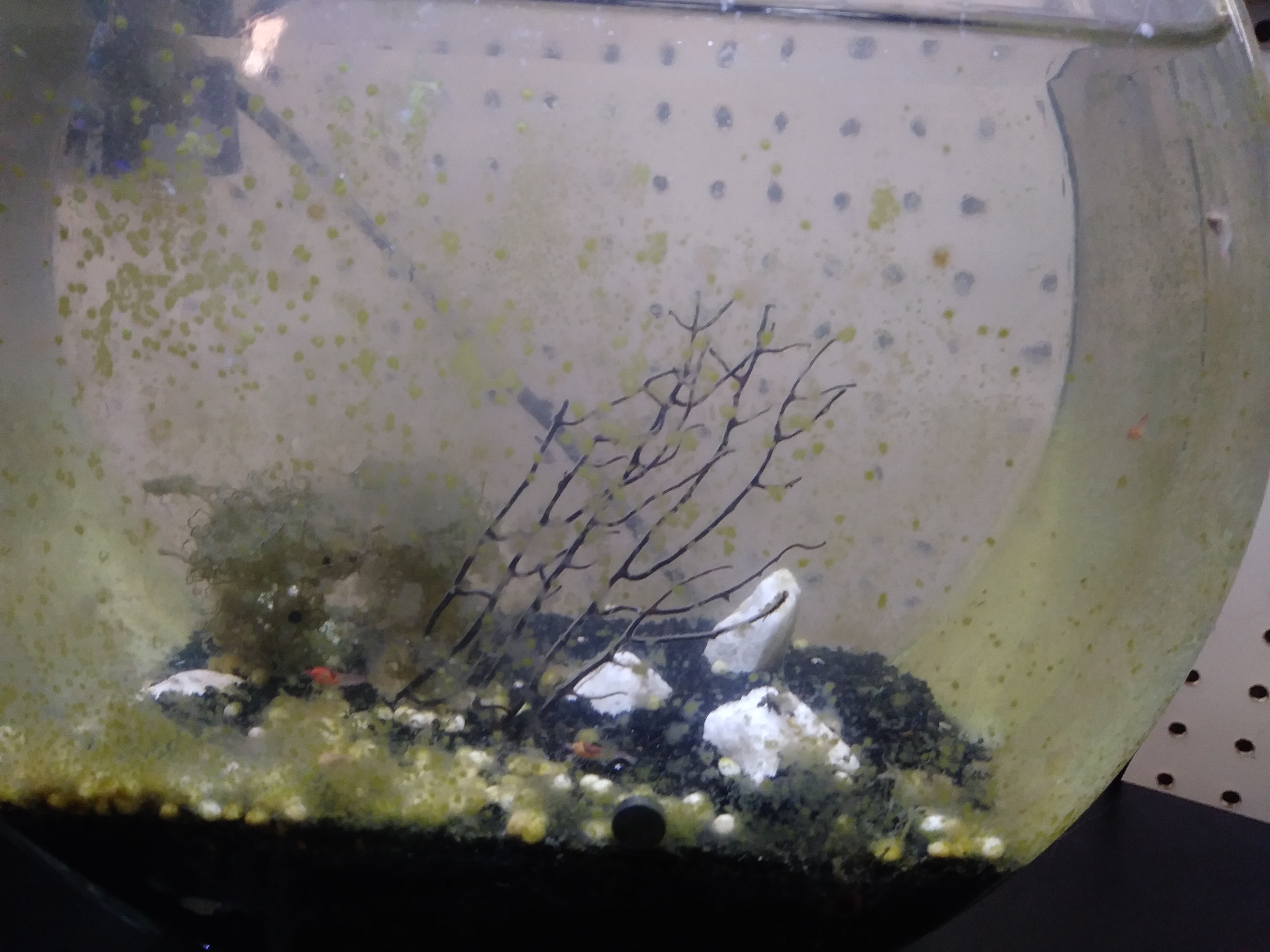 Thanks! Glad to know I'm not completely crazy (yet). Even this morning when I glanced in I saw so many more snails than last time. I guess they liked the darkness this weekend, makes me wonder if my light really is too bright for the critters because all the shrimp were also bright red at first, then got flustered speeding around and went paler again and the snails have all burrowed. For the algae I guess I'll just scrape the front of the glass a bit, you can see how bad it still is in the pictures even after trying to clean it up before the move. The white rocks were practically invisible until I tried scrubbing them and also flipped them over lol. There's still a good coating on the front left section of the substrate but it's so thick that when I try and pull it up a lot of the substrate goes with it unless I take the time to carefully pick through it. Maybe now with 2 dark days the snails will finally come out more and do a better job! I also need to top off the water, I forgot the jug at home again. I also plan to get some kind of other decor for them, especially if the light is bothersome to them they need more coverage... Unless they don't? Ya'll are the experts, which is why I ask :D