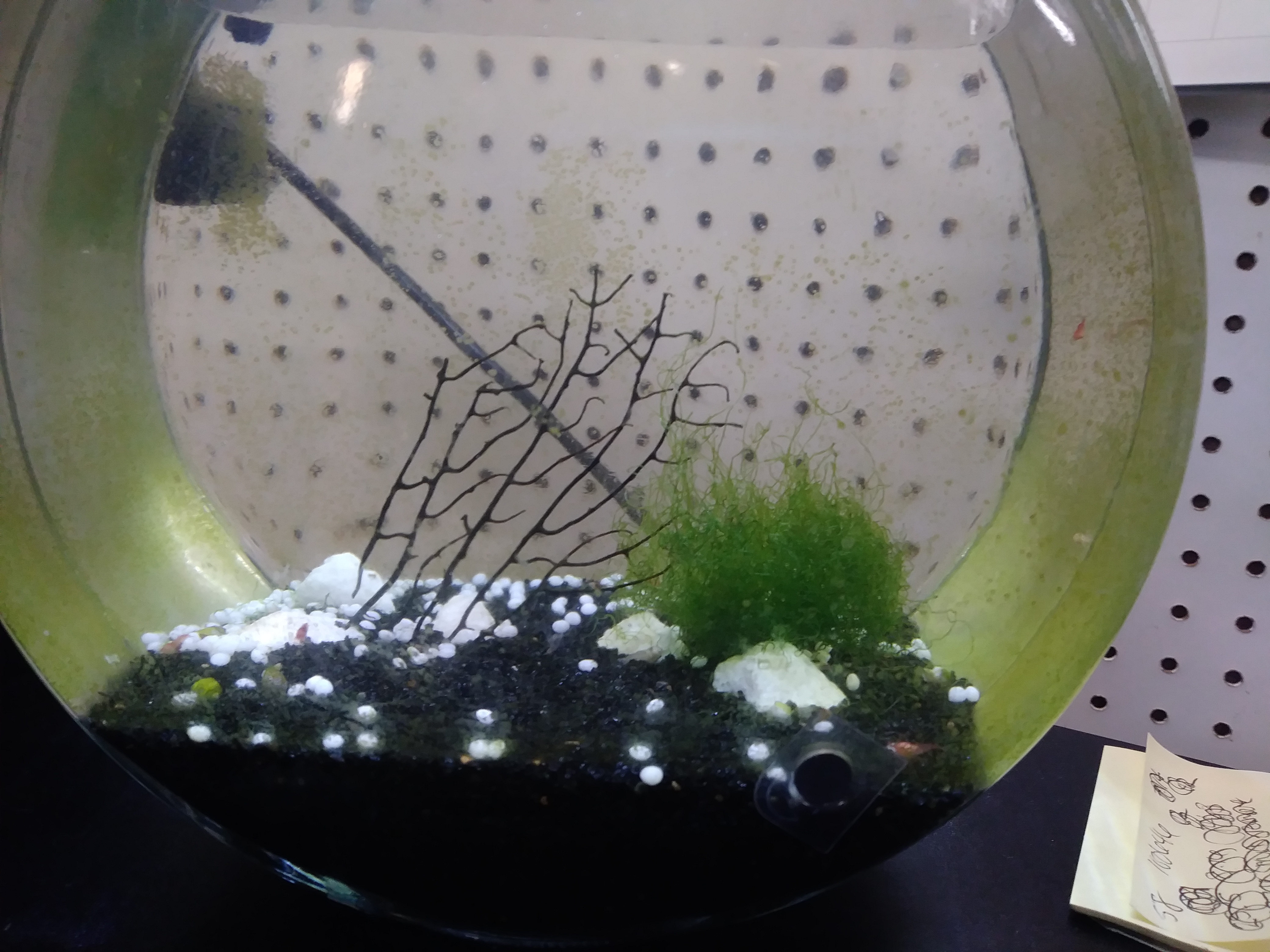 Good day folks! I've been lurking around here for awhile and have gleaned much great information. Thanks to ya'll I learned how to open my evil Eco-Sphere and release my poor prisoner into a 1gal. I got everything to set up my tank from here, including the black substrate, calcium carbonate rocks, macroalgae, and the snails along with 10 shrimps after establishing everything. At this point, many months later, I have some questions-