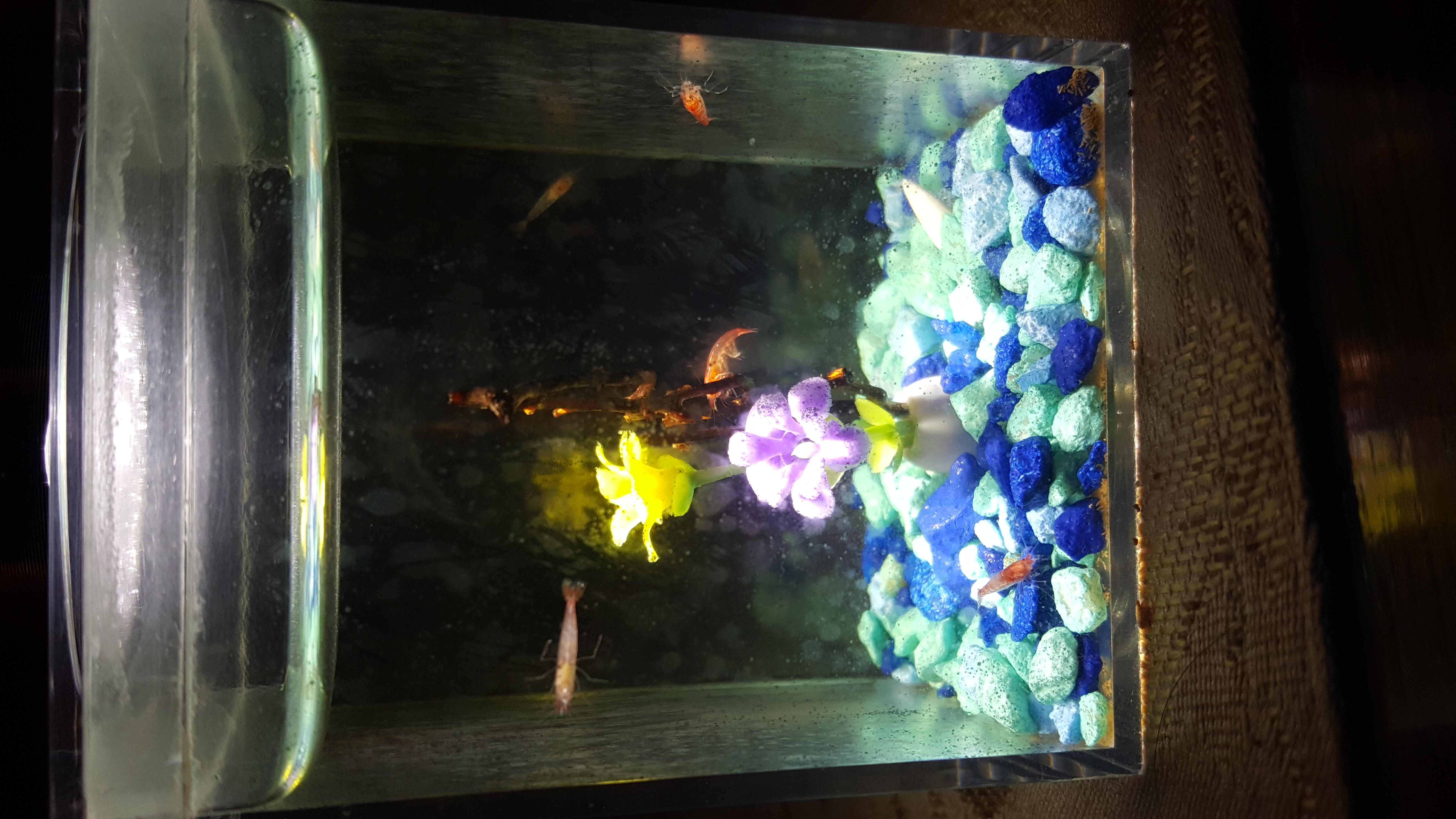 1. glass round container is over a year old, originally 4 shrimps, 3 died fairly soon of receiving and the last shrimp has lived over a year.