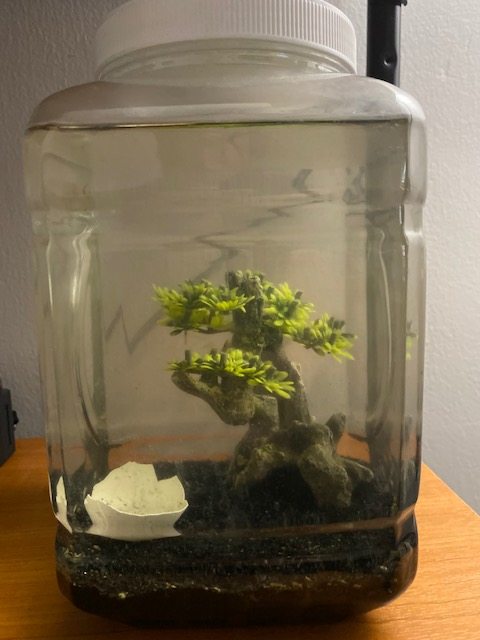 Another idea I had was to remove the tree. I don’t think the toxins released from plastics will hurt fish because they are relatively large but compared to the tiny shrimp anything barely detectable would affect them. It’s as if I give an adult tyvenol to a baby that’s ten pounds. It will harm them.