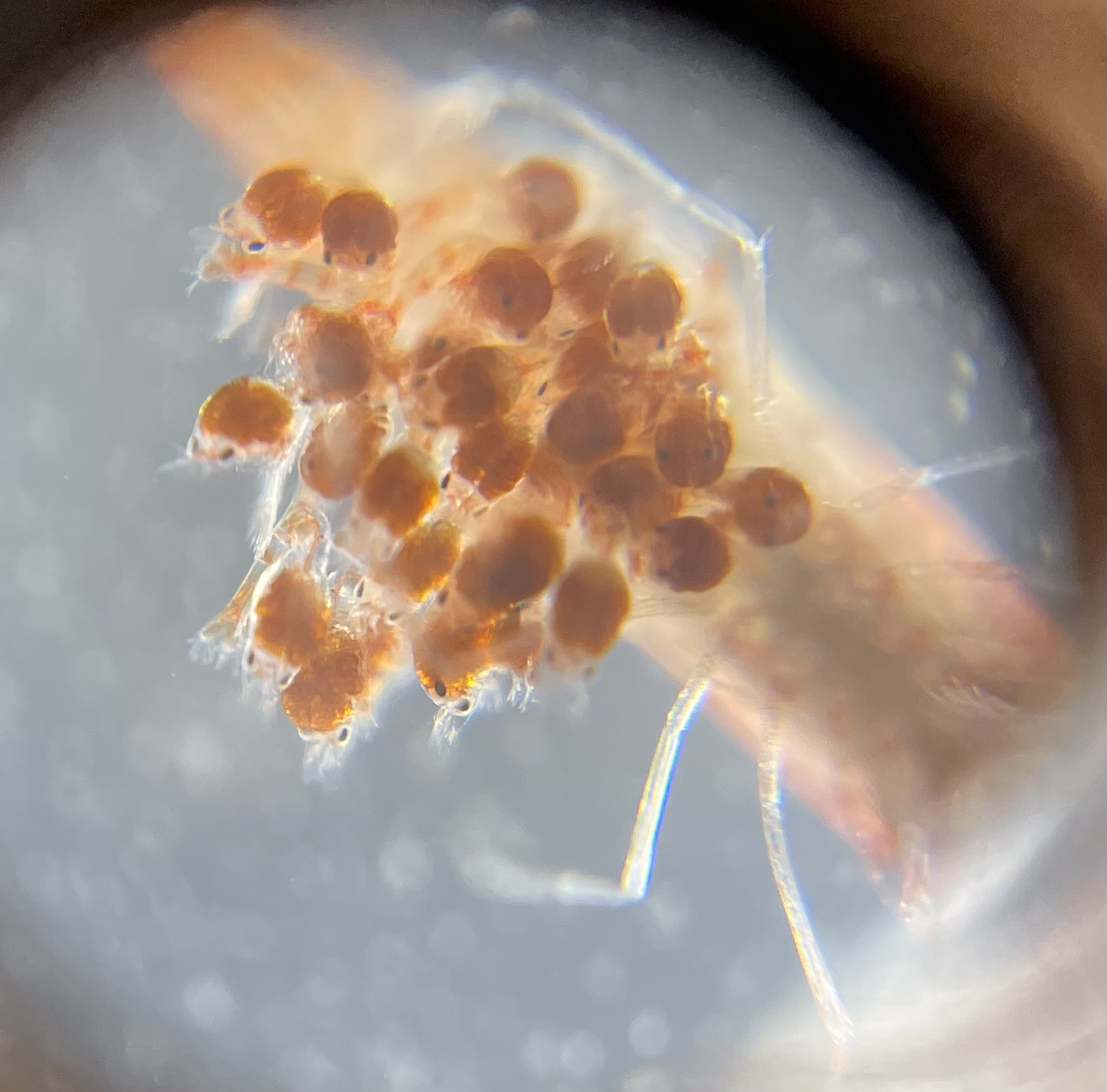 That is a lot of babies! I tried to count and I got to about 25. I have never had a shrimp with that many eggs. Very cool.