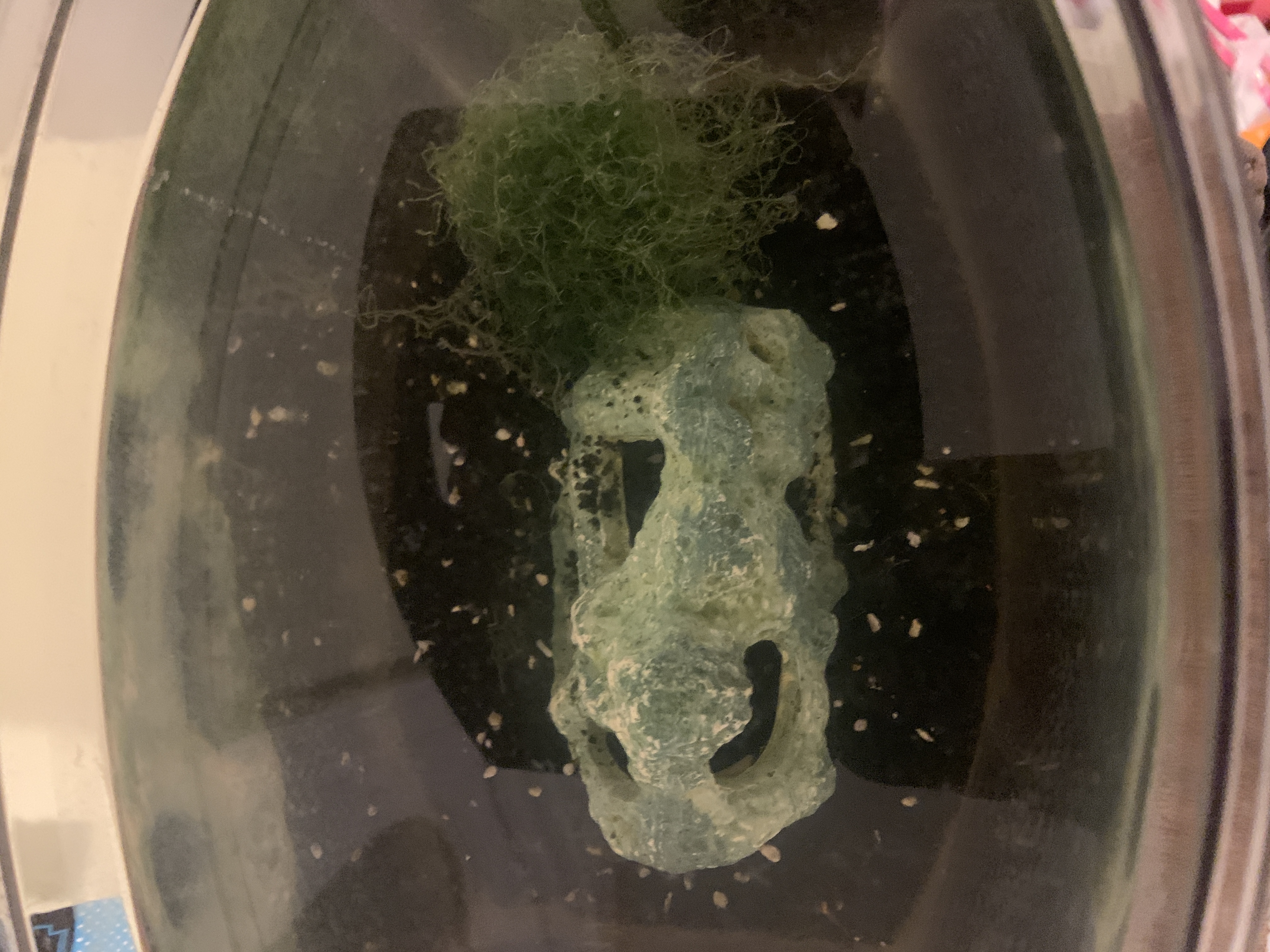 Today, I turned on my shrimp light this morning as usual, and my one shrimp was on the glass and seemed completely fine. A few minutes later, he swam to the top of the water. When he swam back down, it looked like he was holding onto something. I don't know how to describe it; it just looked like he was holding on to some sort of clear object. He swam back down with it, and began swimming on his side. Sometimes he sits on his back and flails his legs. I thought that maybe he's trying to molt, and that the clear piece it looked like he was hanging on to was his molt, but then I read that shrimp usually hide when molting and that they stay still. He went into the cave for a bit where I saw him flailing around through the holes in it, but now he's back on the outside of the cave flailing on his back.