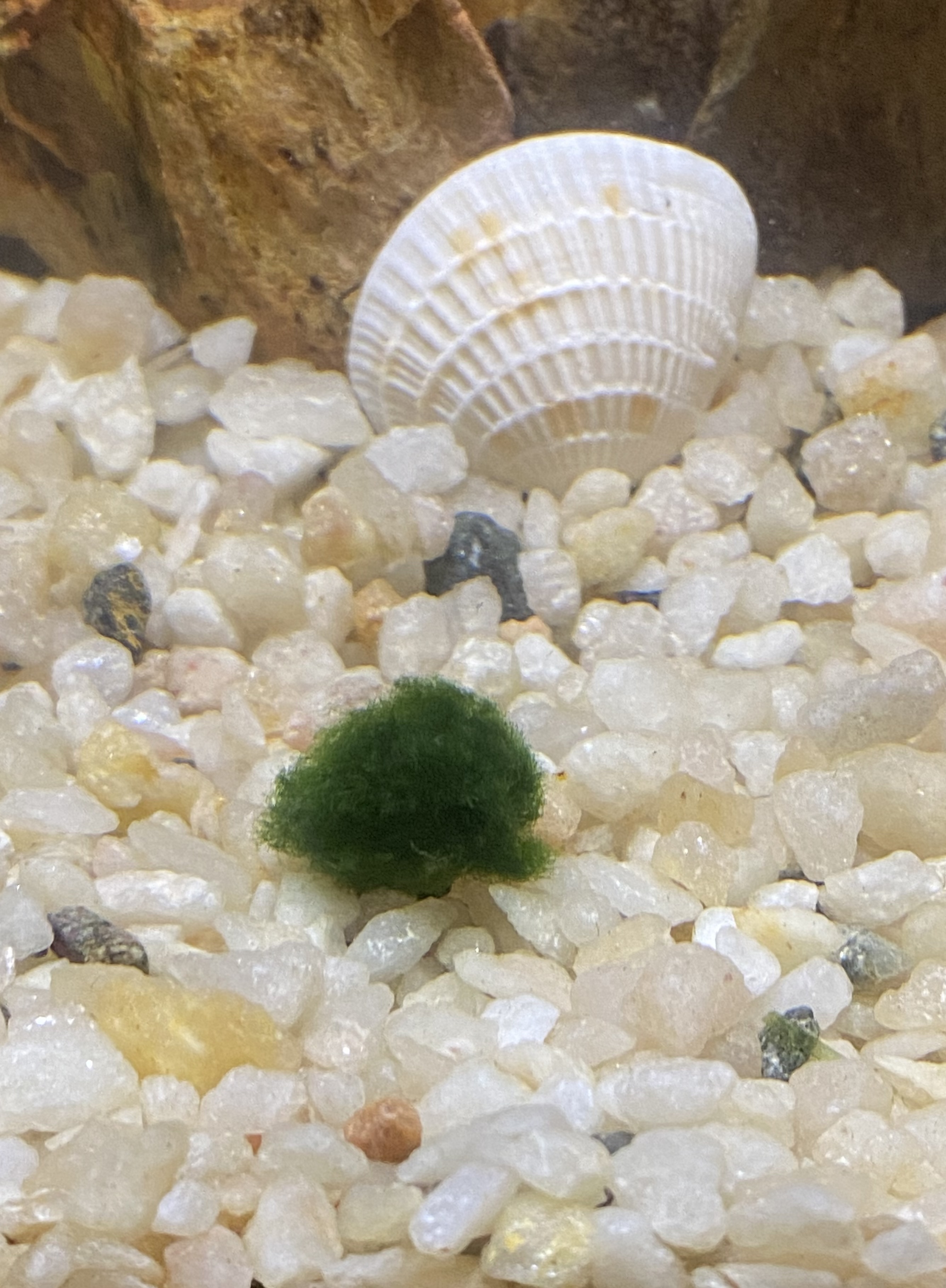 I ordered the mysterious brackish moss ball plant from petshrimp.com and I absolutely love it. I have kept freshwater marimo for years and immediately I could tell this plant was something different entirely when I released it in my tank. I want to chronicle the brackish moss ball’s growth along with my shrimp and hope to eventually have a bit of a carpet of the little orbs in the Opae Ula tank like Mustafa has in his video.
