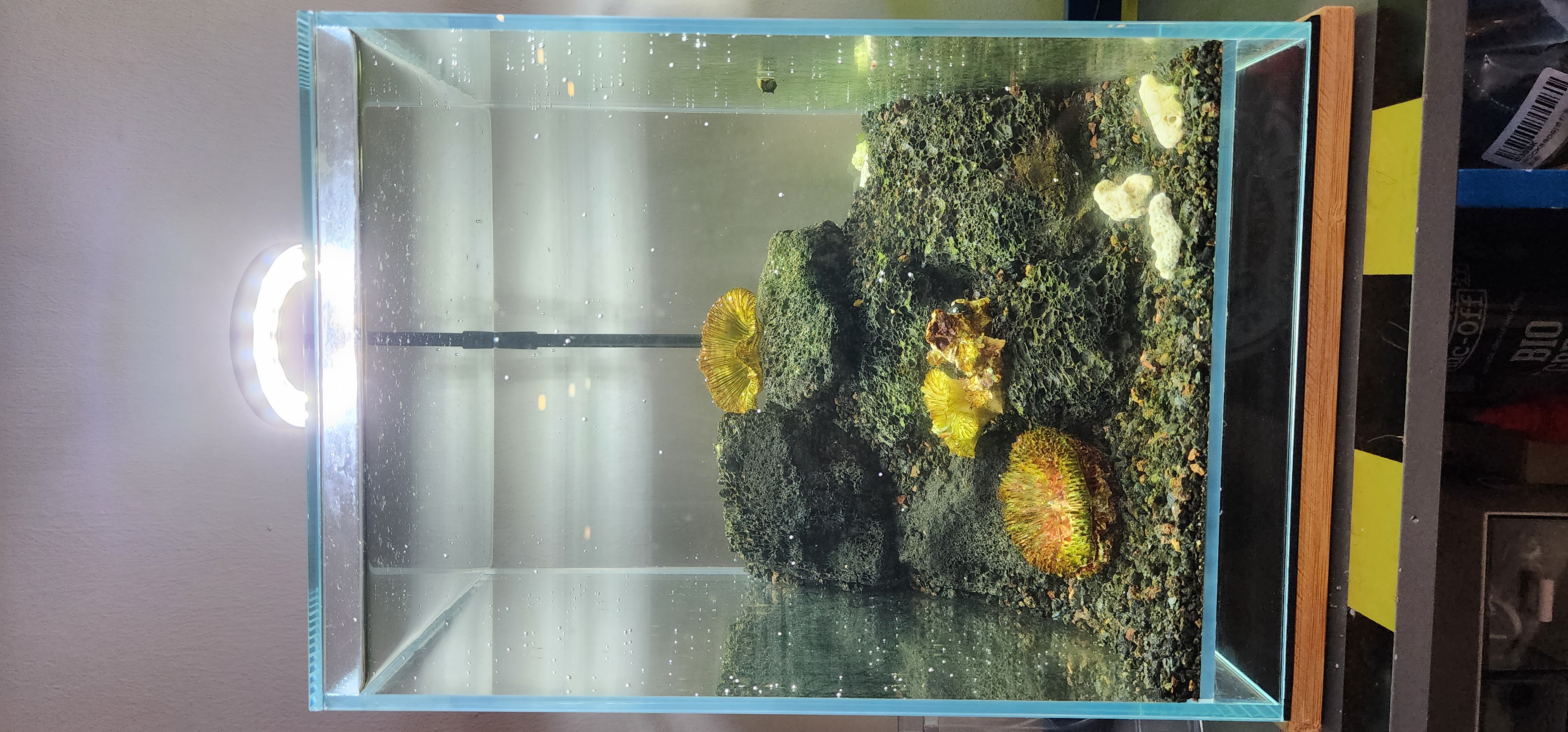 Here is my new setup with 12 shrimps and 2 nerite snails.