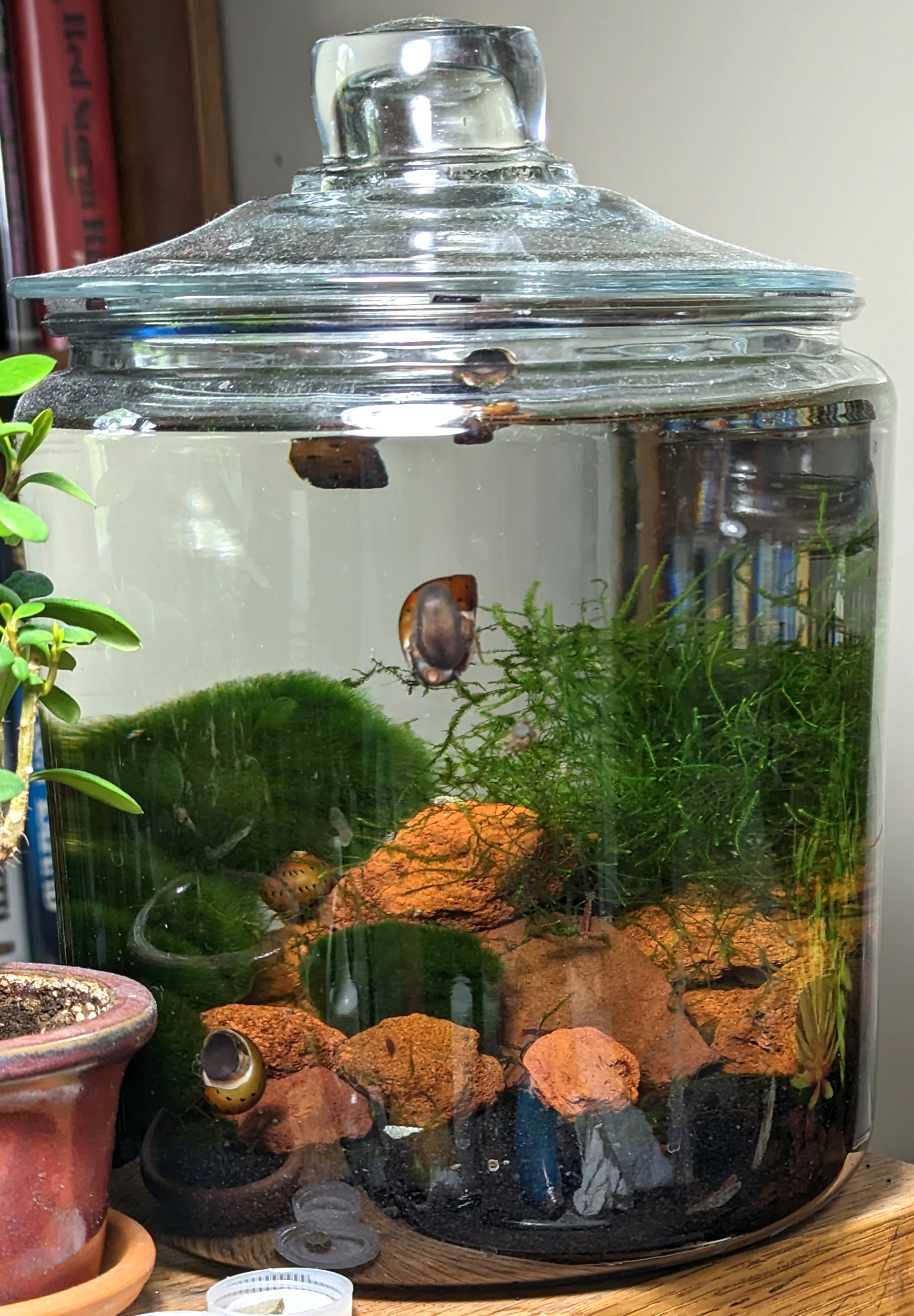 I haven't set my tank up yet but was kind of thinking I would do a huge pile of them up against the side of the tank. But would the shrimp rather have more open water to swim around in, instead? And does this prevent snails from getting into the substrate underneath the rock pile? And... maybe this is a dumb question but... would placing a bunch of lava rocks in the tank decrease the amount of water that can be in it, too? I can't tell because the rocks are so porous, it seems like they wouldn't actually displace that much water, but I wasn't sure. I don't want to throw things off with the packet of salt I just ordered for a 1-gallon...