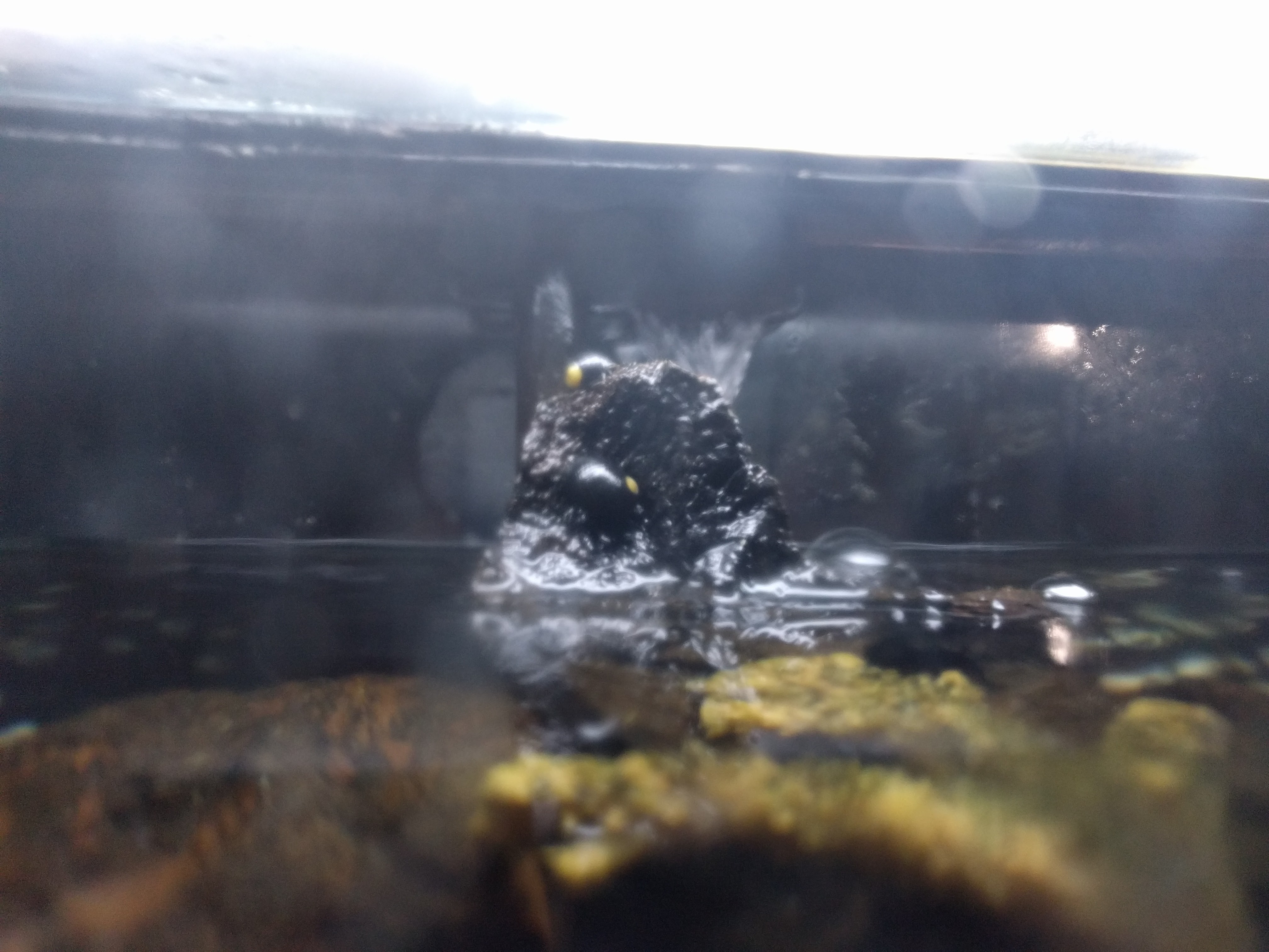 )There are also about 6 Pipipi Nerites in here. They are most active at night. I also moved one of my Zebra Horned Nerites in here. They are more active during the day and way more voracious than the Pipipi's. And I added about ten shrimp, three of my original purchased shrimp and the rest are all my spawn. There's one in this pic if you can spot him