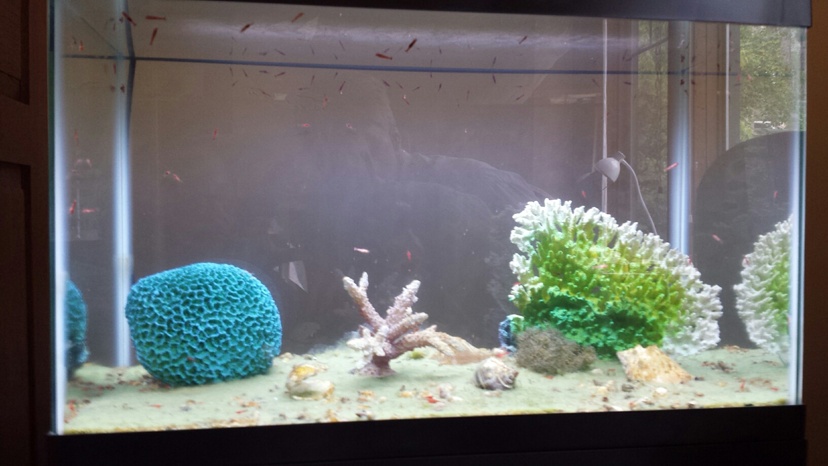 There are probably way more than that there. My experience is that there are always a lot more shrimp than you can count and hence you think you have. Anyway..wow...congrats, congrats, congrats! Your tank is a poster for my method. At some point I'll have to pay you royalties or something...tooth wrote: My estimate for total shrimp in the tank, counting larvae, is about 170,