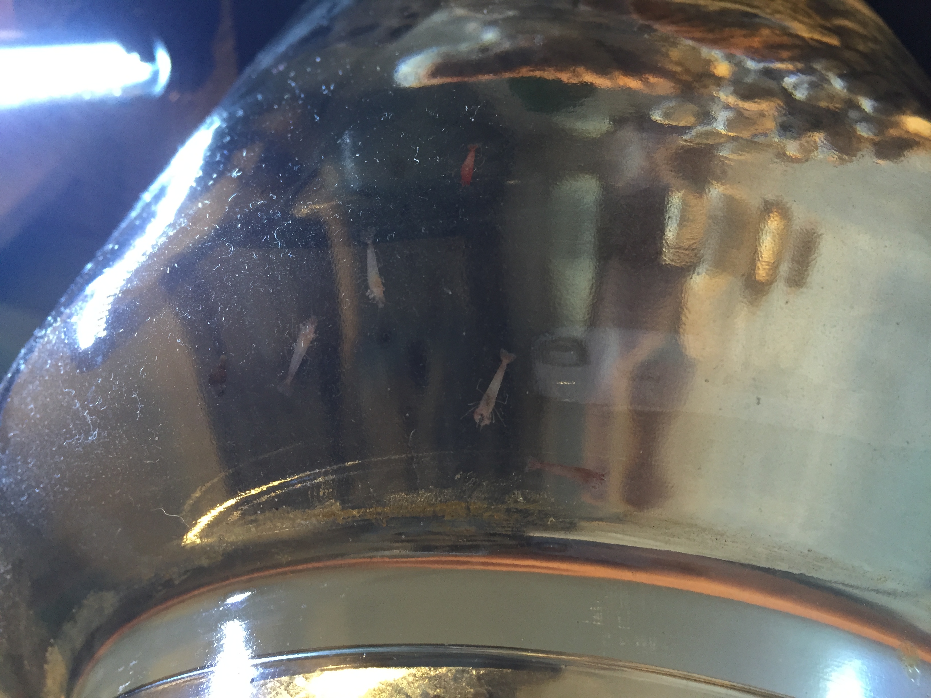 I think I made a mistake by ordering my shrimp too soon because I let my son's impatience get to me. It had been about 6 weeks and I think I was confused about what the algae is supposed to look like. There's noticeable biofilm on the water surface and even though I seem to have killed a couple of my original snails, the remaining 6-7 seemed to be doing well. I purchased an LED tank light, set a timer on it and ordered some additional snails, and 10 opae ula. I released them into the tank 2 days ago and this morning I noticed that 4 of them are dead!