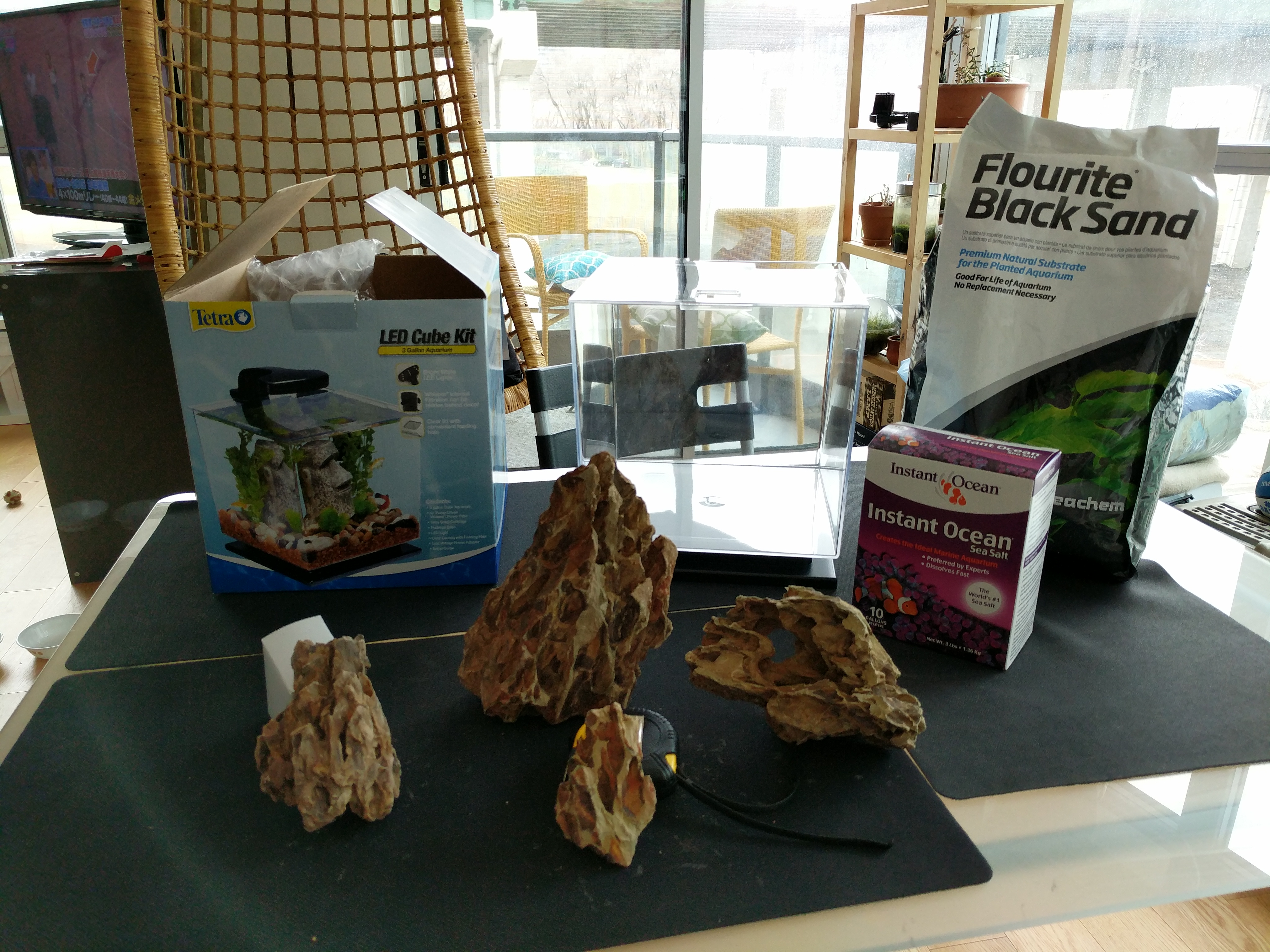 So I went to buy most of my other supplies today. Was really happy with the selection of dragon stone they had. It was hard to decide. Also bought some nice inactive black sand as a substrate! Now I need to wait a month for the opae ula.