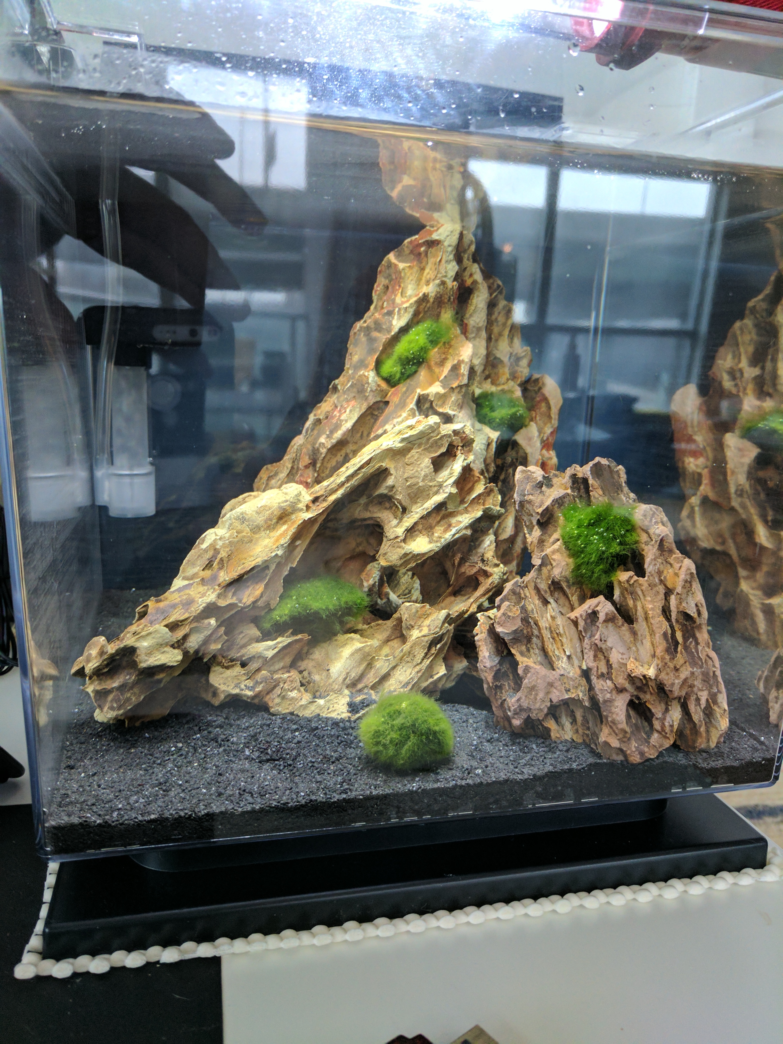 I'm really envious of the rocks you have got! The arrangement looks really good and I love the fact that it looks so much like a volcanic island and the marimo looks great on the rocks too! Would love to try something like that