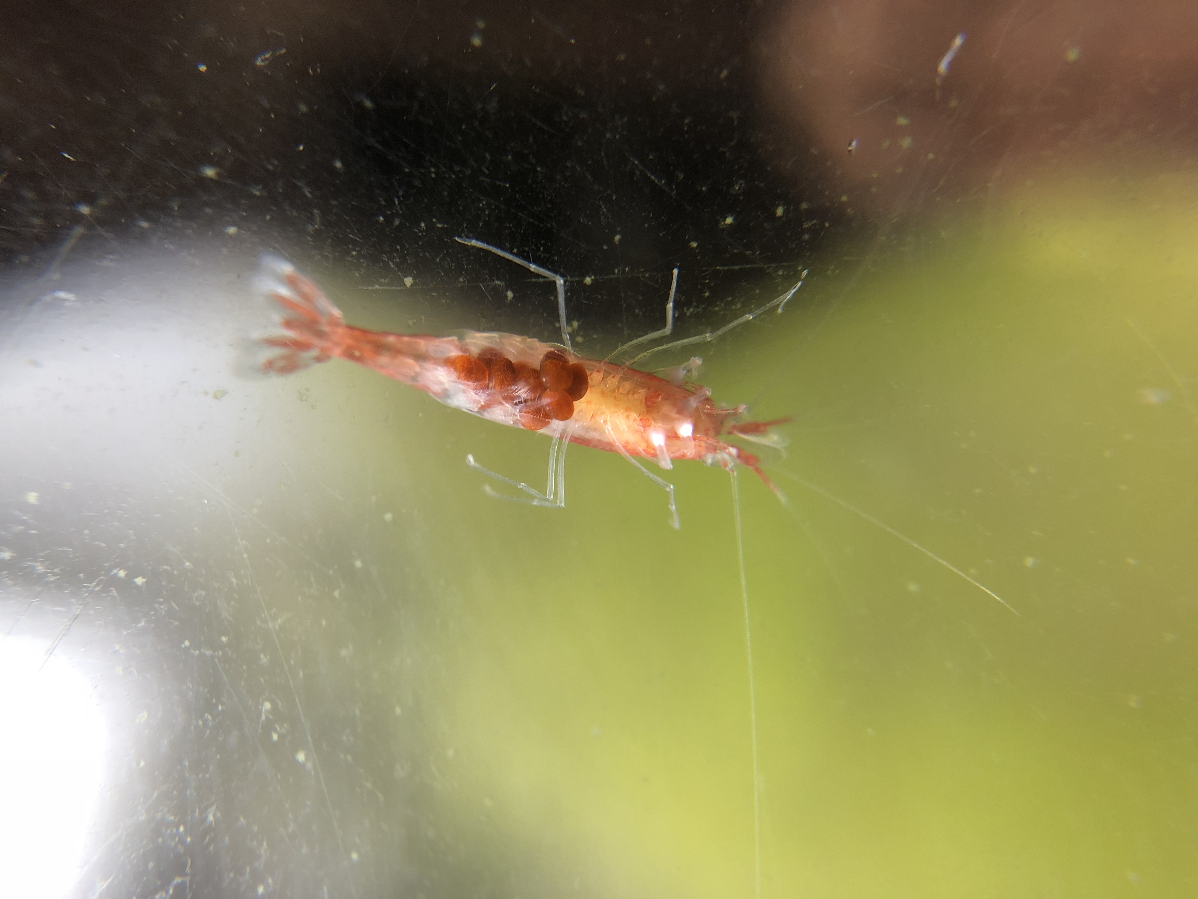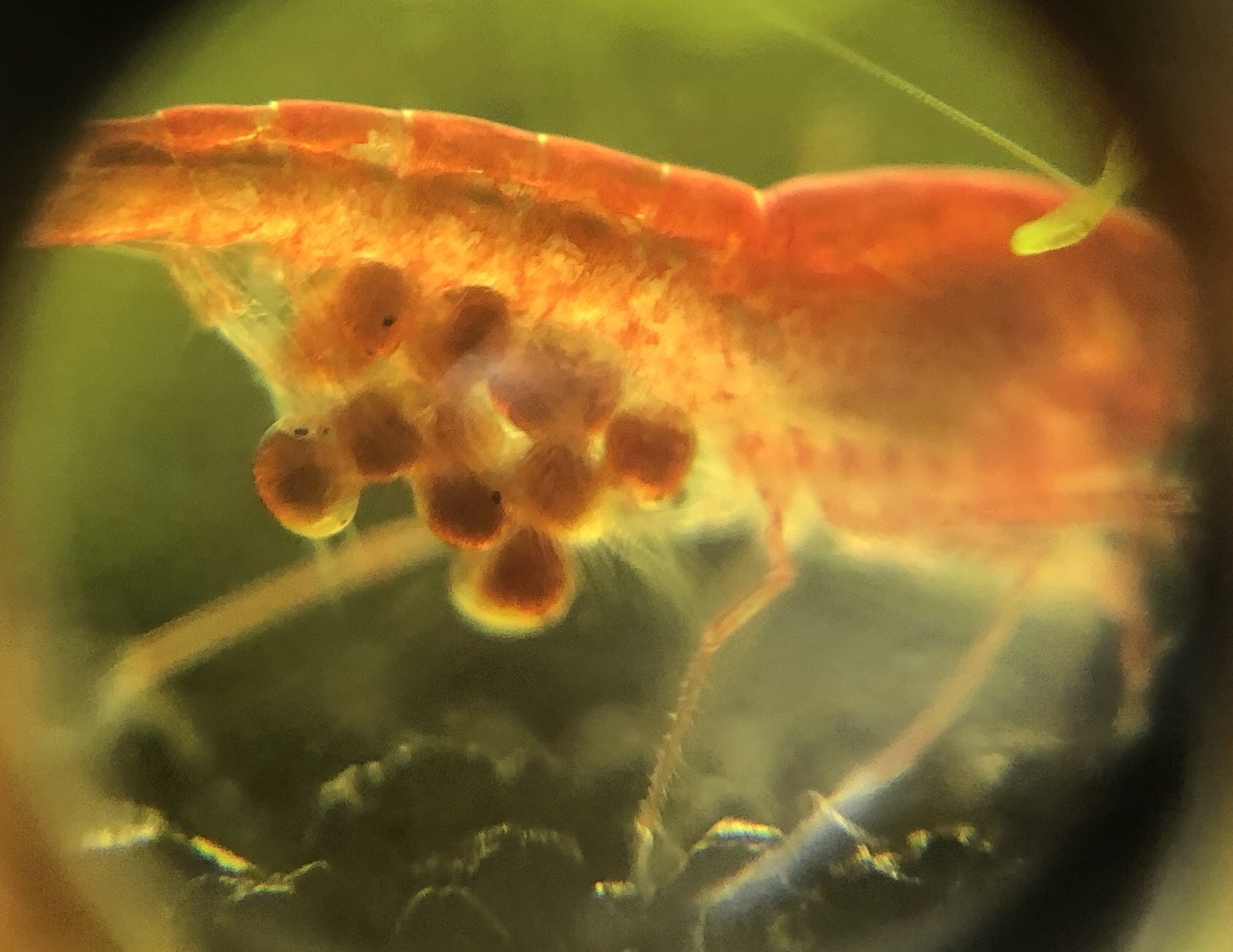 Thanks! Unfortunately one of the berried shrimps lost a majority of her eggs. She’s down to 5 eggs left. I actually just saw her loose 2 more with my own eyes. =( The other one still looks to be intact. On a side note I was able to take a picture of the egg with my jewelry magnifying glass. Holy crap it’s tiny!