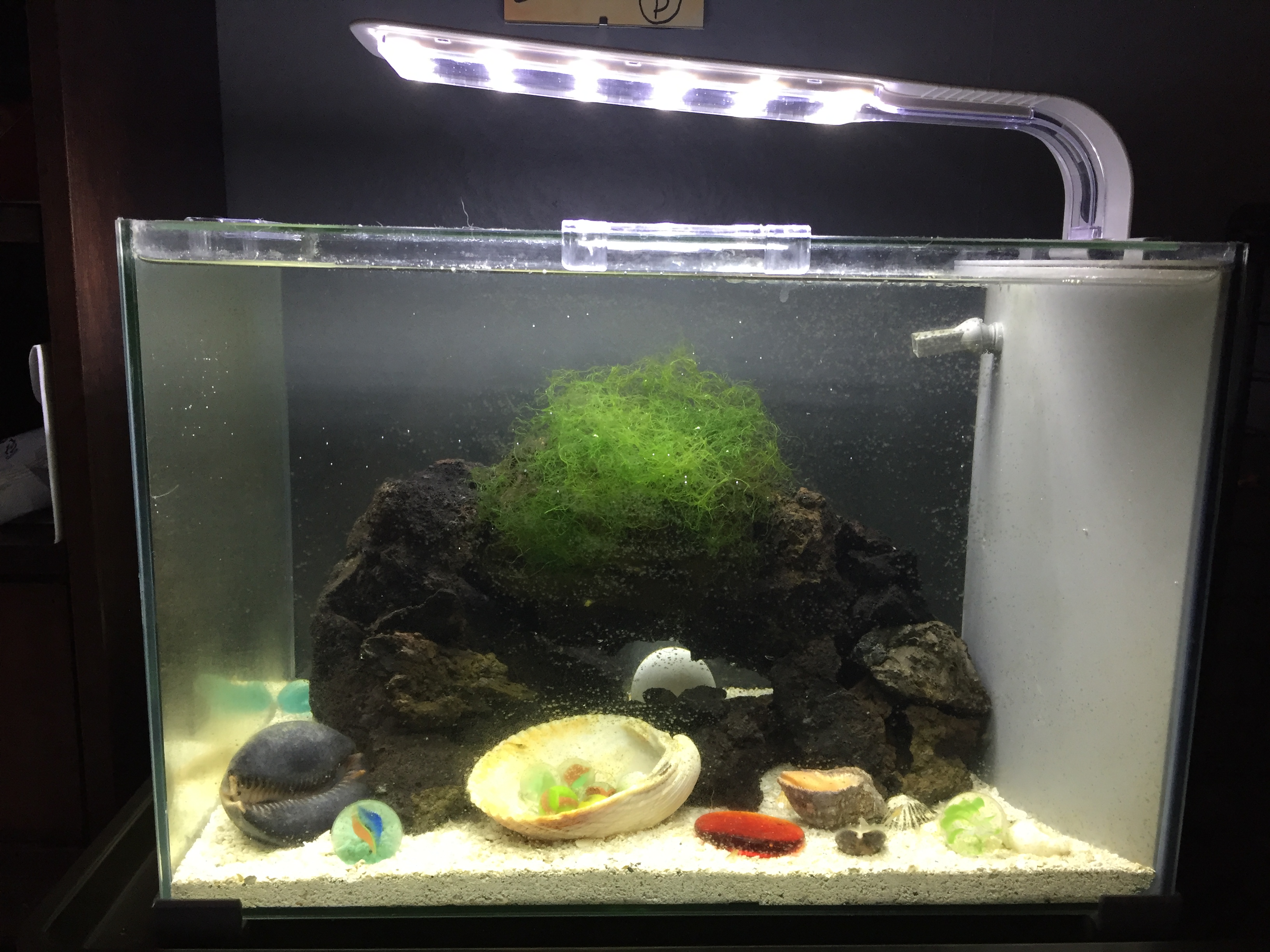 Anyways after placing everything where I wanted I think I'm happy with my 1 gallon/15 shrimp setup. They looked quite pale at 1st but they seem to be in slightly better shape than when I first recieved them.