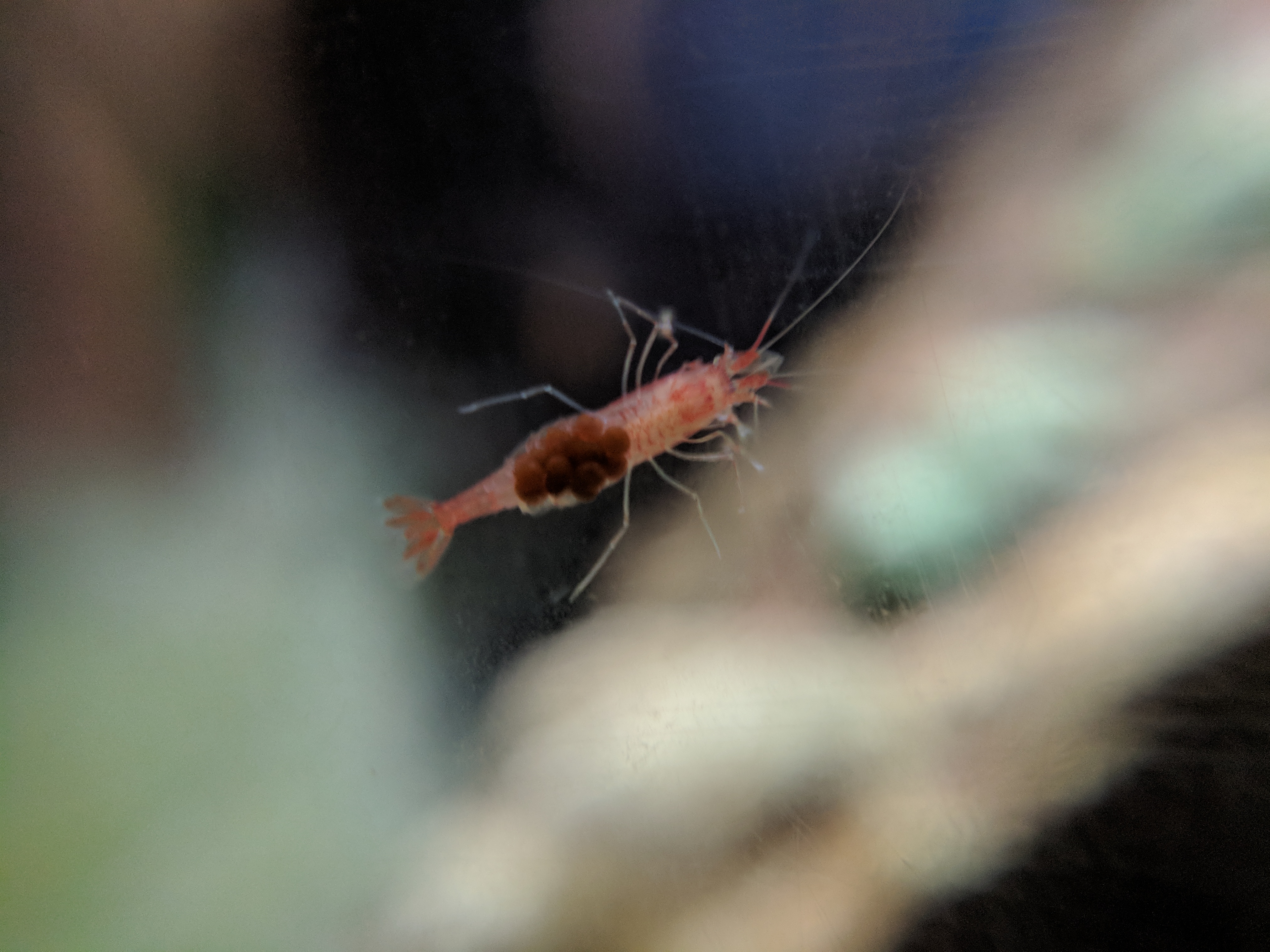 It's almost been a year of waiting.. and I was afraid maybe my keyboard typing was too disruptive since the tank is on computer desk.. but I see my first berried shrimp! So excited!!