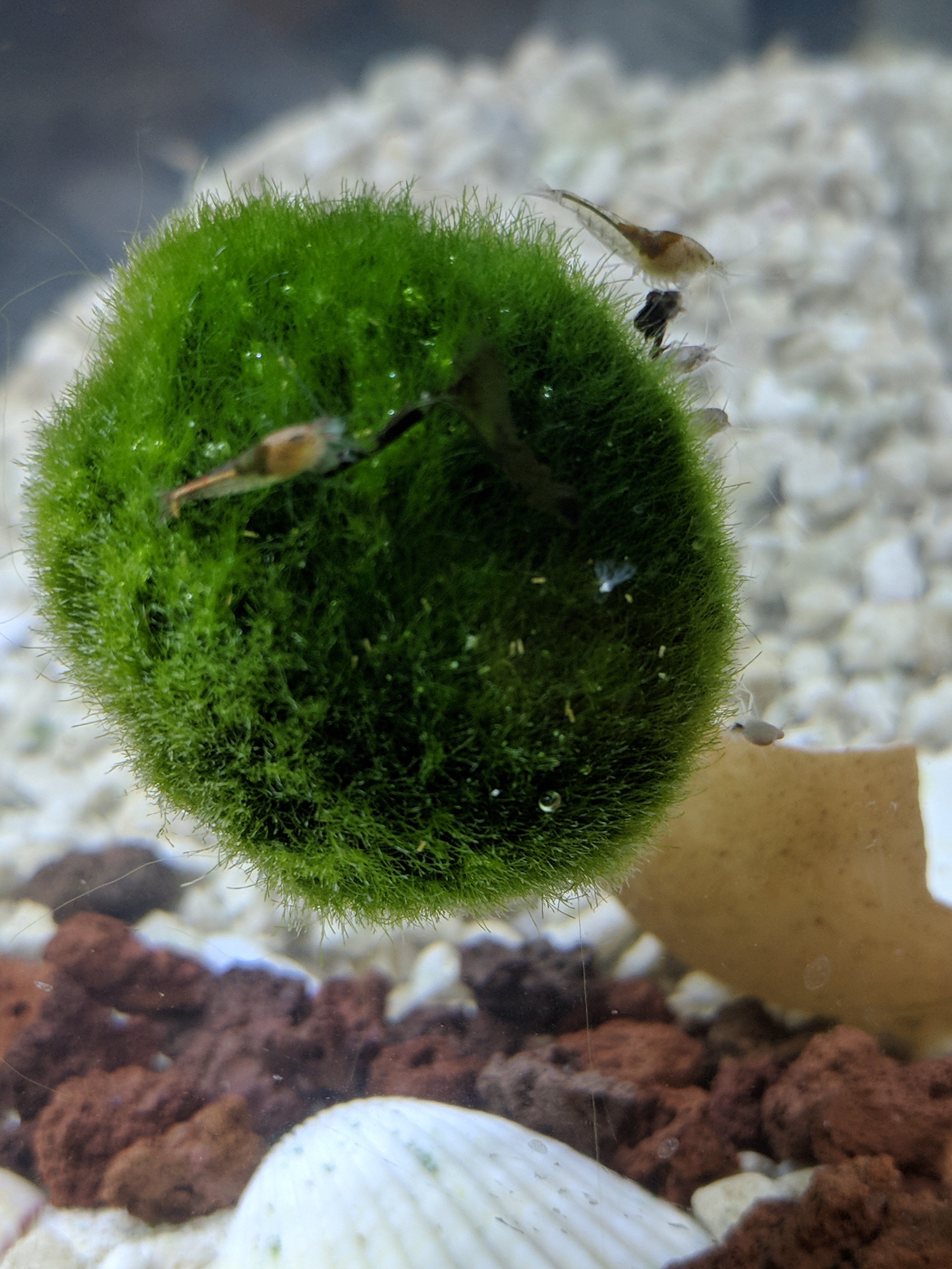 My supershrimp tank almost clear no more algae left, so i chose safe way, i did scraped algae flake from my other tank that almost dry on the surface of my tank lid of freshwater tank and these are pictures of my supershrimp so happy enjoying the algae flakes.