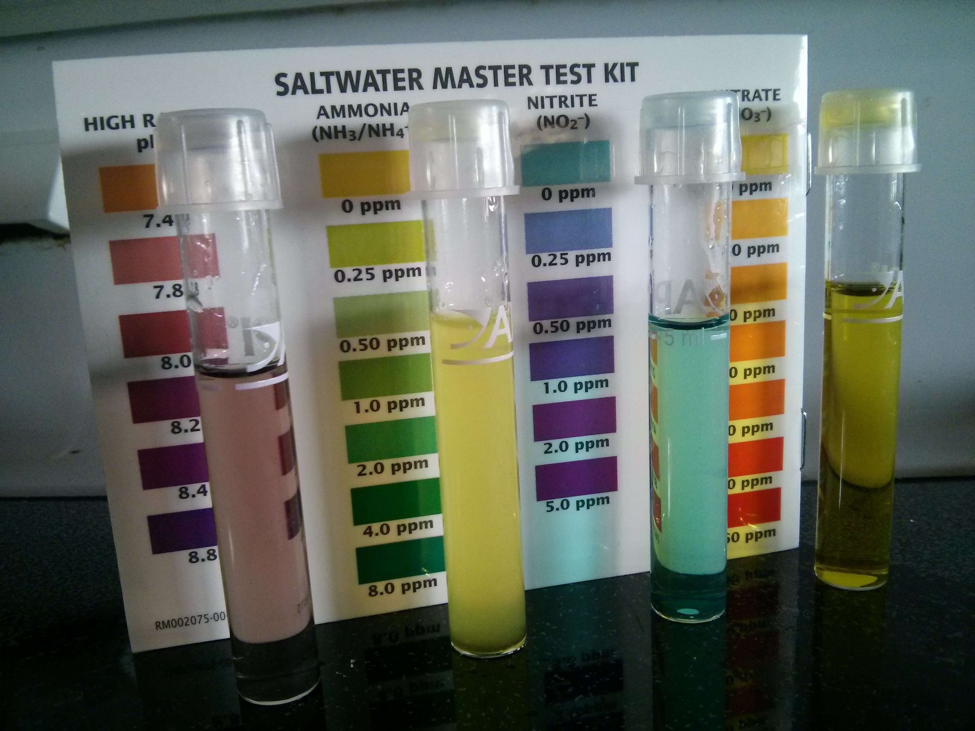 The new tank is definitely cranking away. The Ammonia is slowly dropping and the Nitrates are starting to go up. The Nitrite is about the same as it was a couple days ago. I'm seeing a huge algae bloom on the stuff in there too.