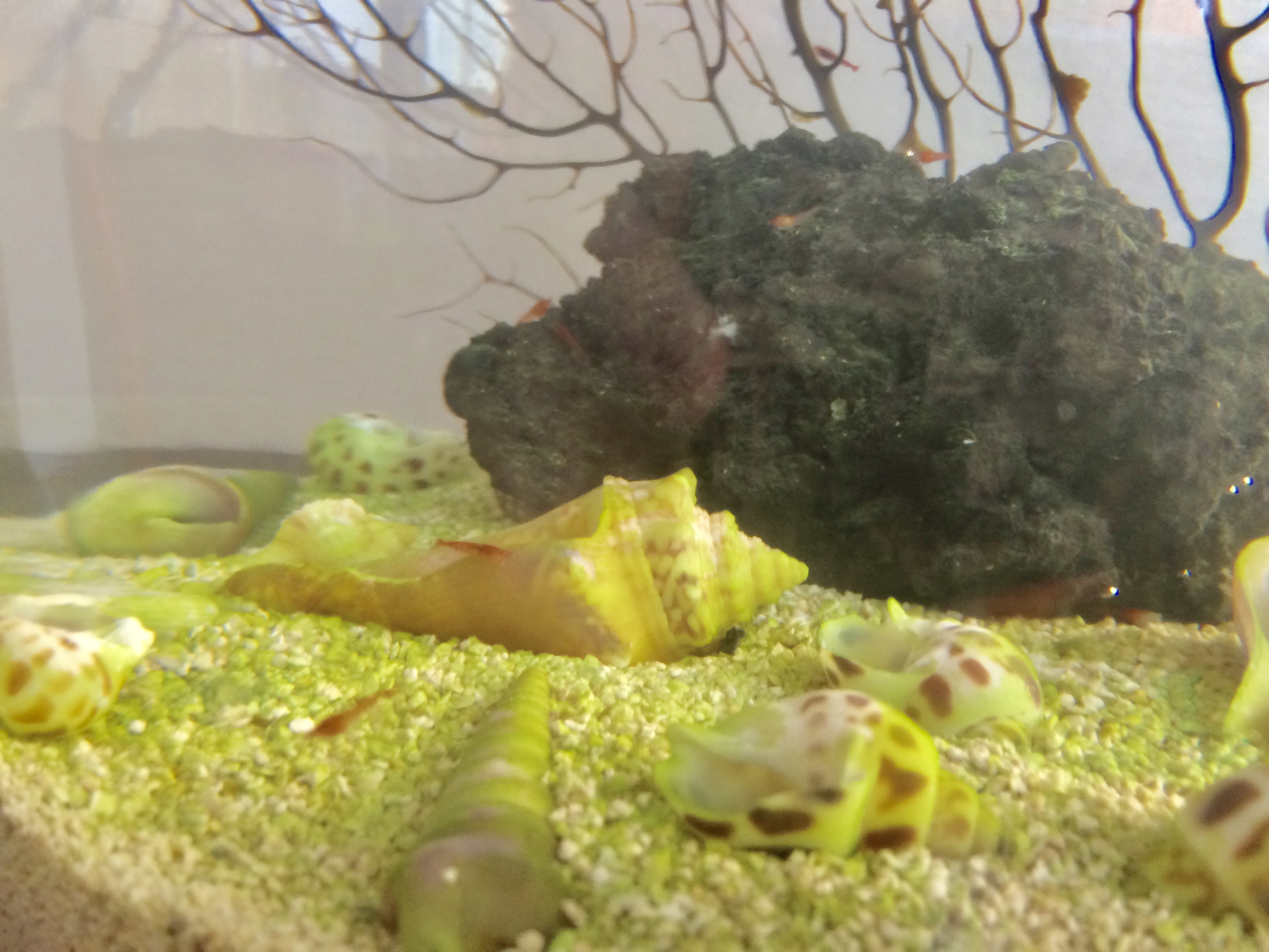 I added a black lava rock and some sea shells to my 1.5 gallon tank. They seem to like the lava rock, as it is found in their natural Hawaiian habitat.