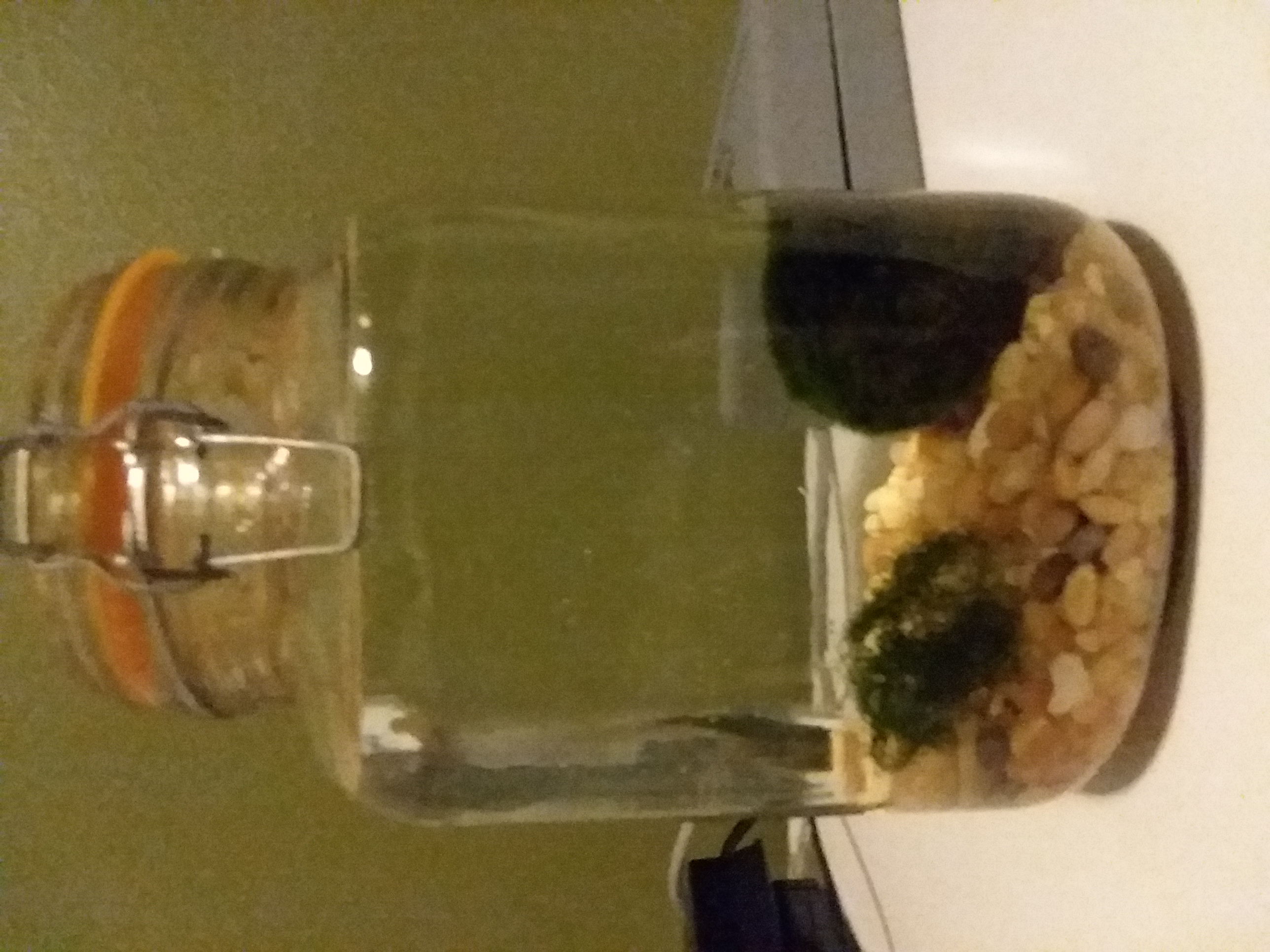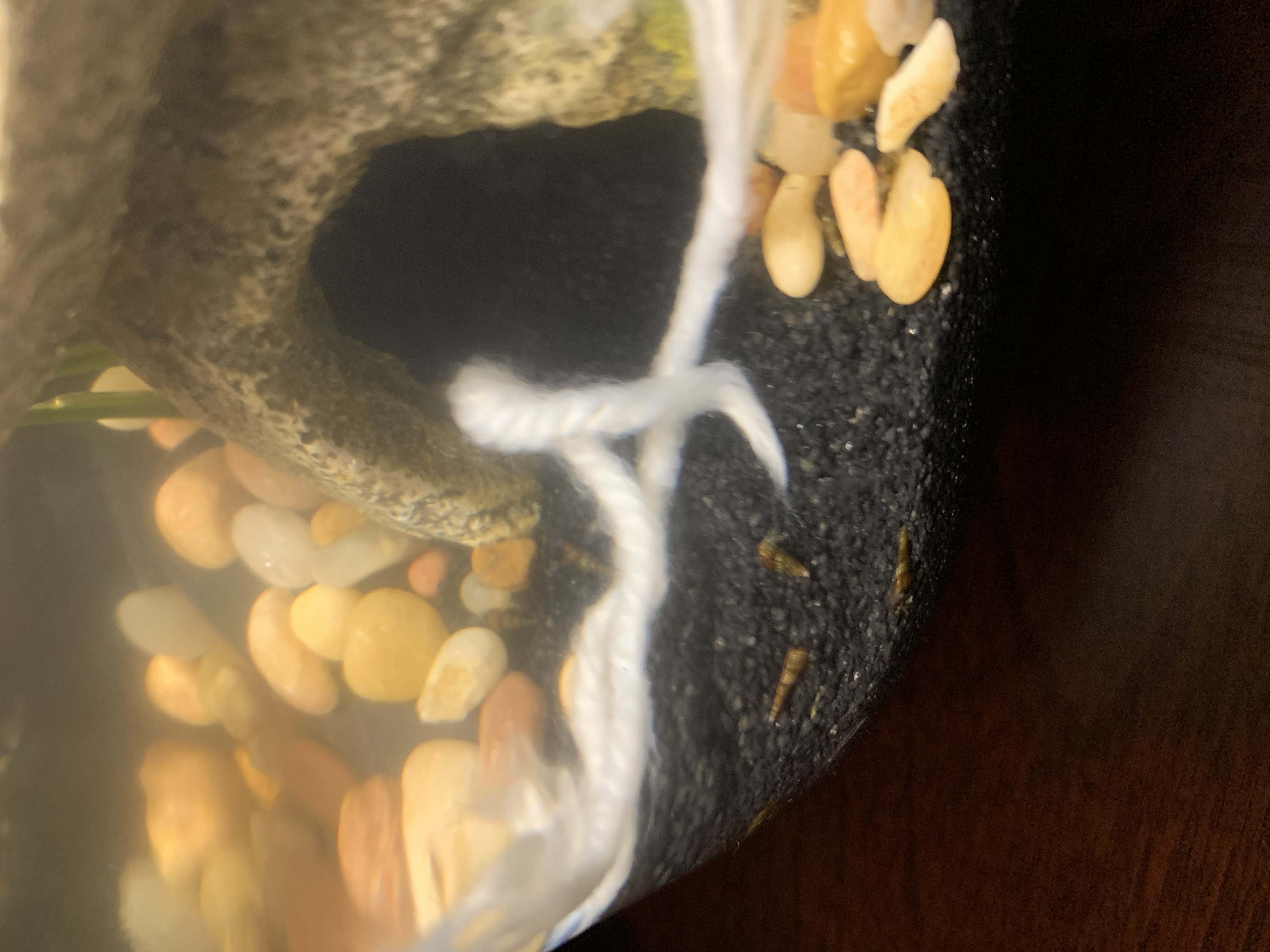 Iremoved the Marimo ball and swapped out the aquarium gravel for black sand.. I took a leap of faith and added the shrimp and brackish snails... Fingers crossed...