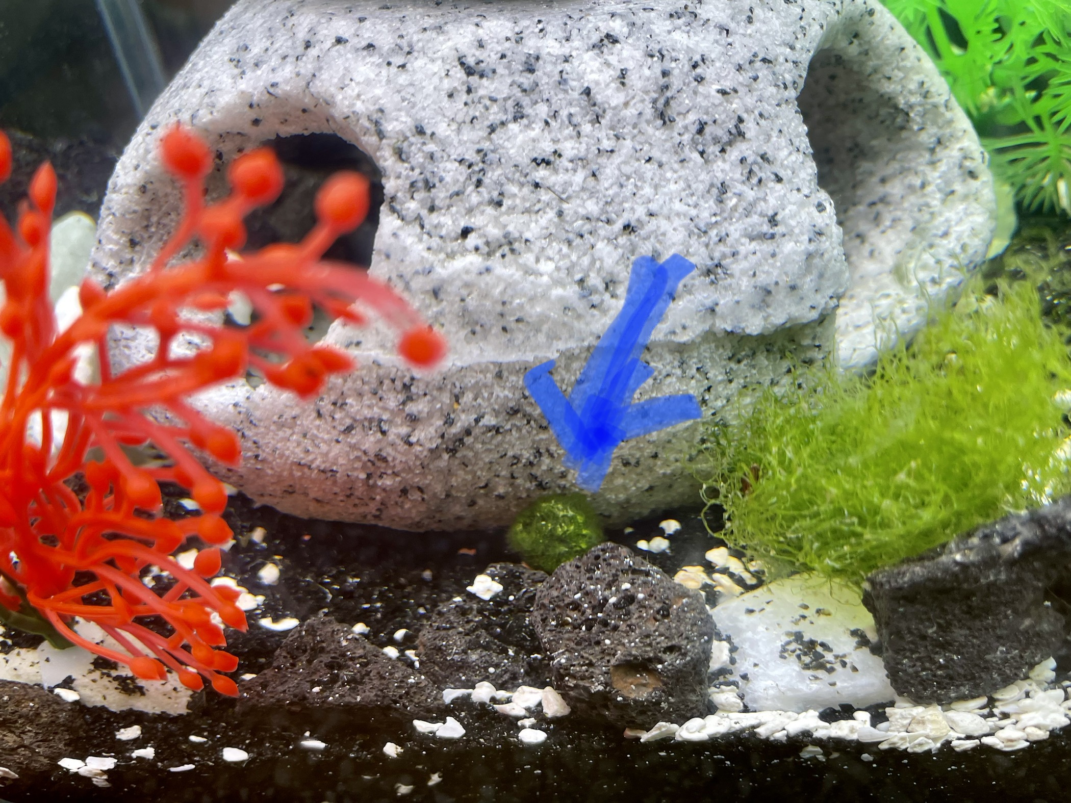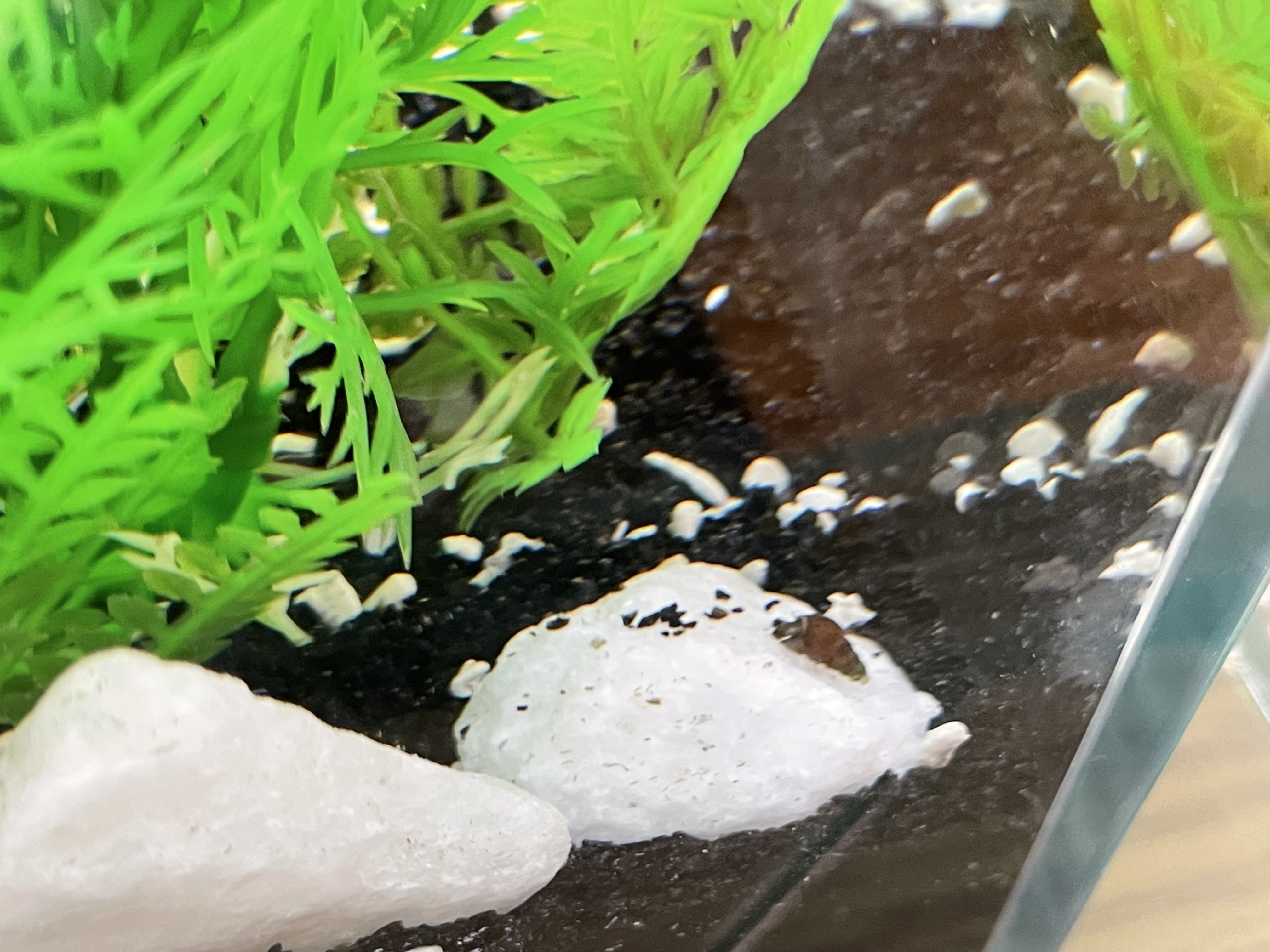 The tank at home was doing well. I have seen lots of molts of the shrimp. We have an artificial light on this one as we have it in our kitchen and there is no natural light in there.