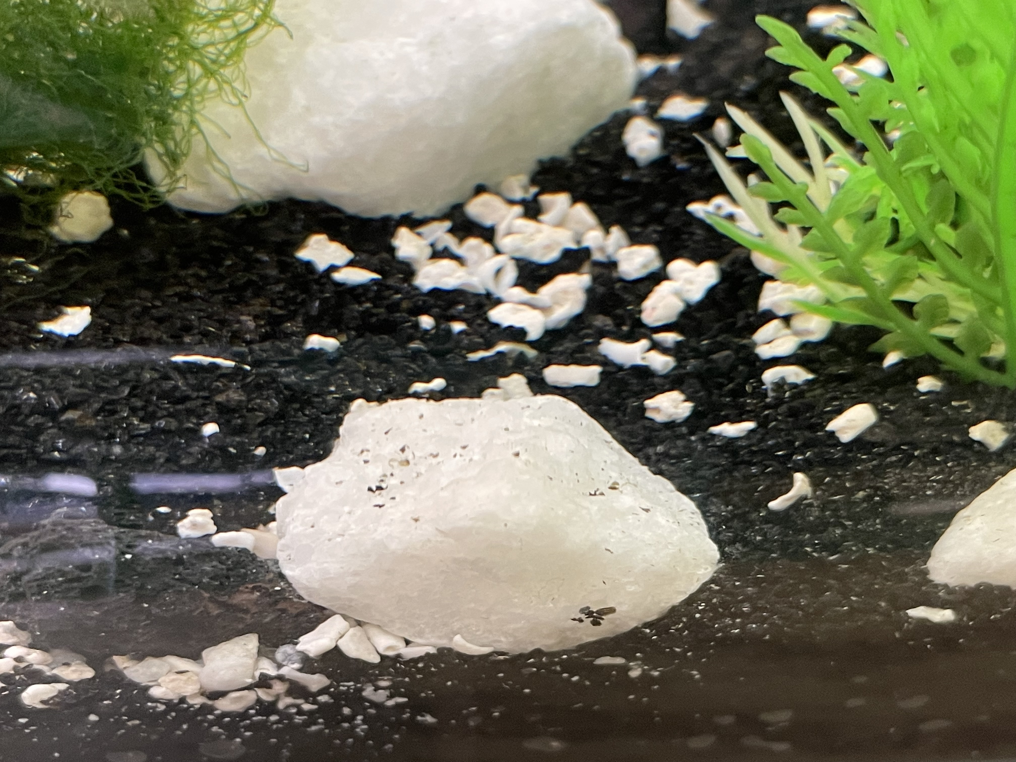 This tank has some little dark things that are on the white rock. Could it be snail poop? Algae? or just substrate?