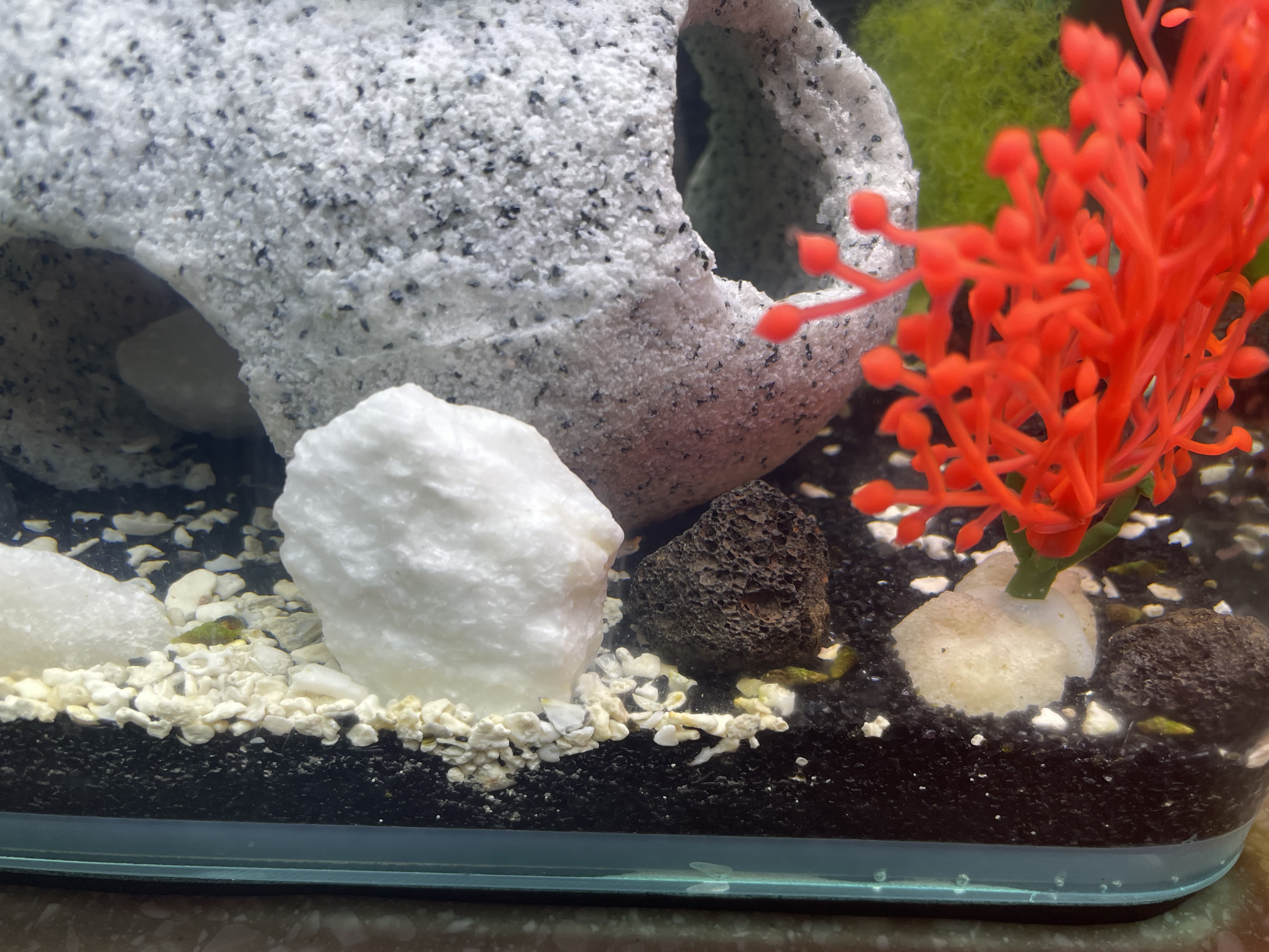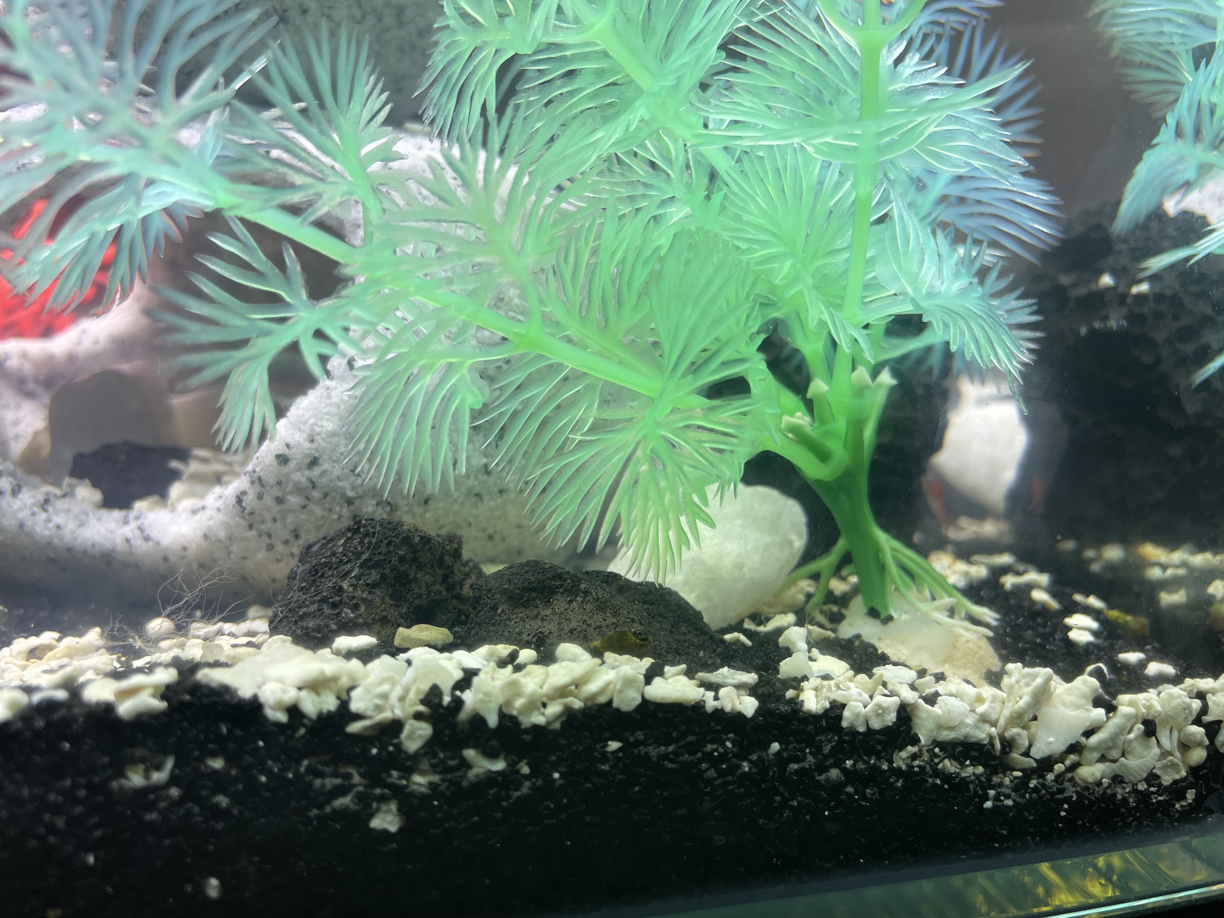 I noticed there was a white feather looking thing in the water near the substrate. (You can see it in the picture that does not have the red plant in the bottom left corner.)