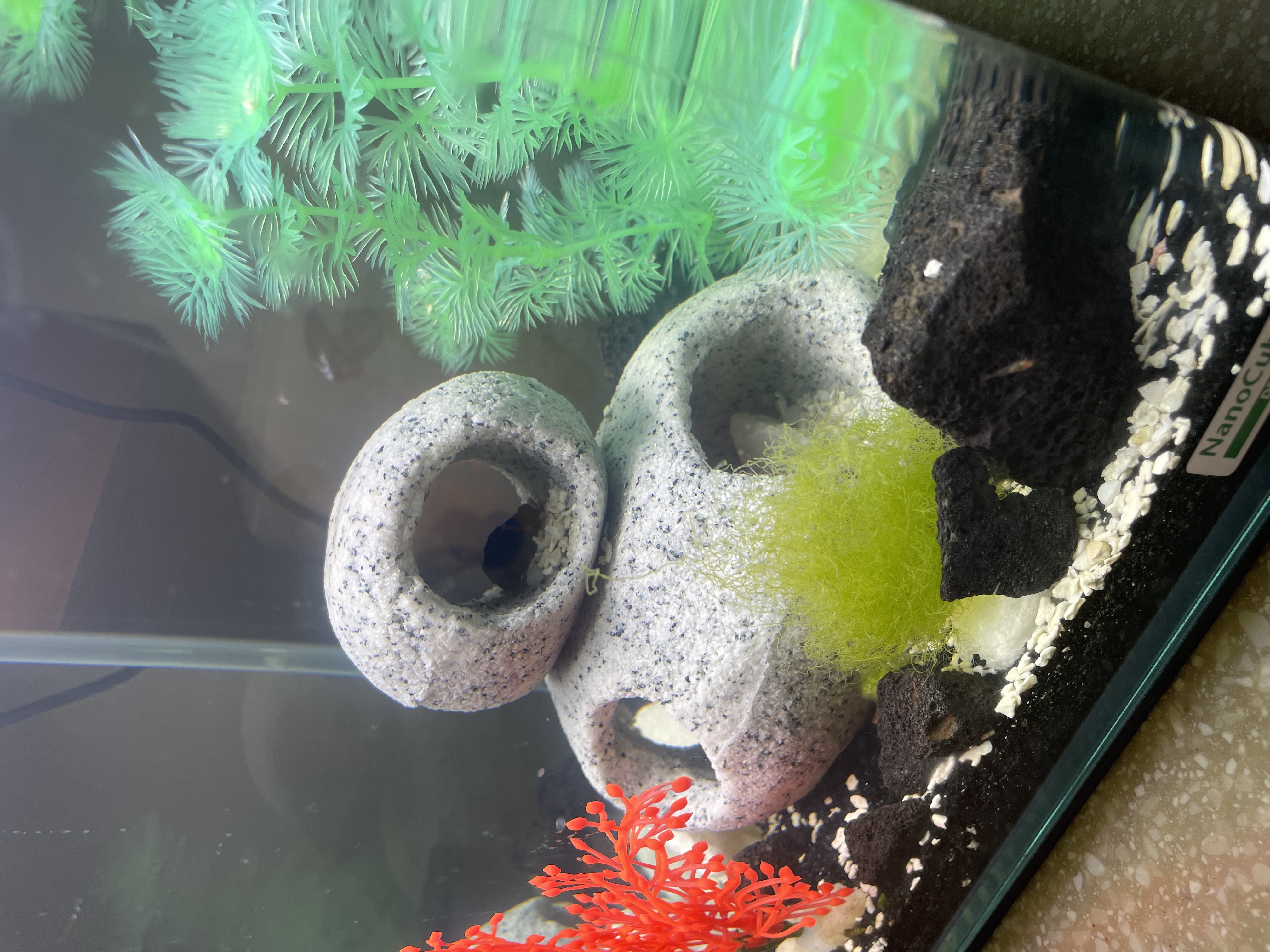 She loves hiding in the big green plastic plant - that is definitely her safe spot in the tank.