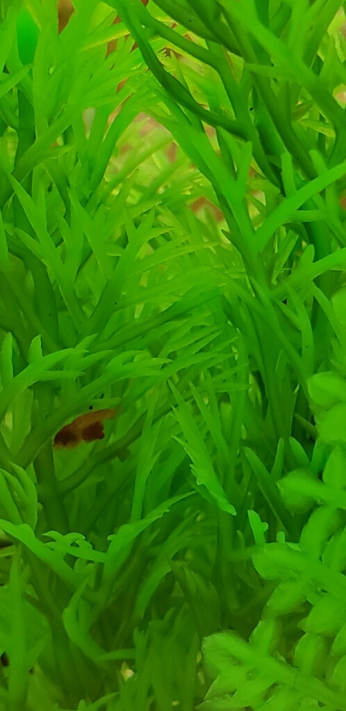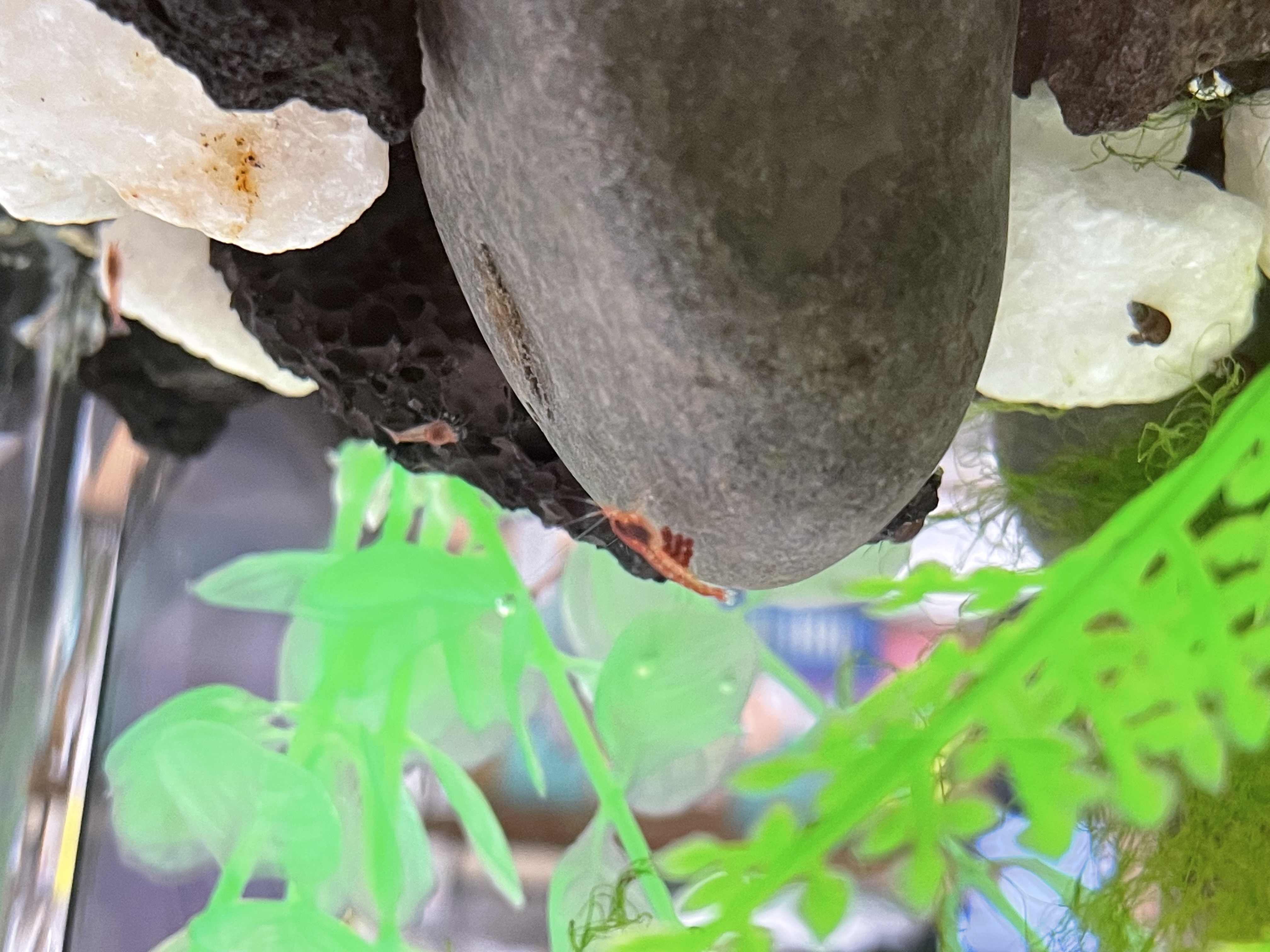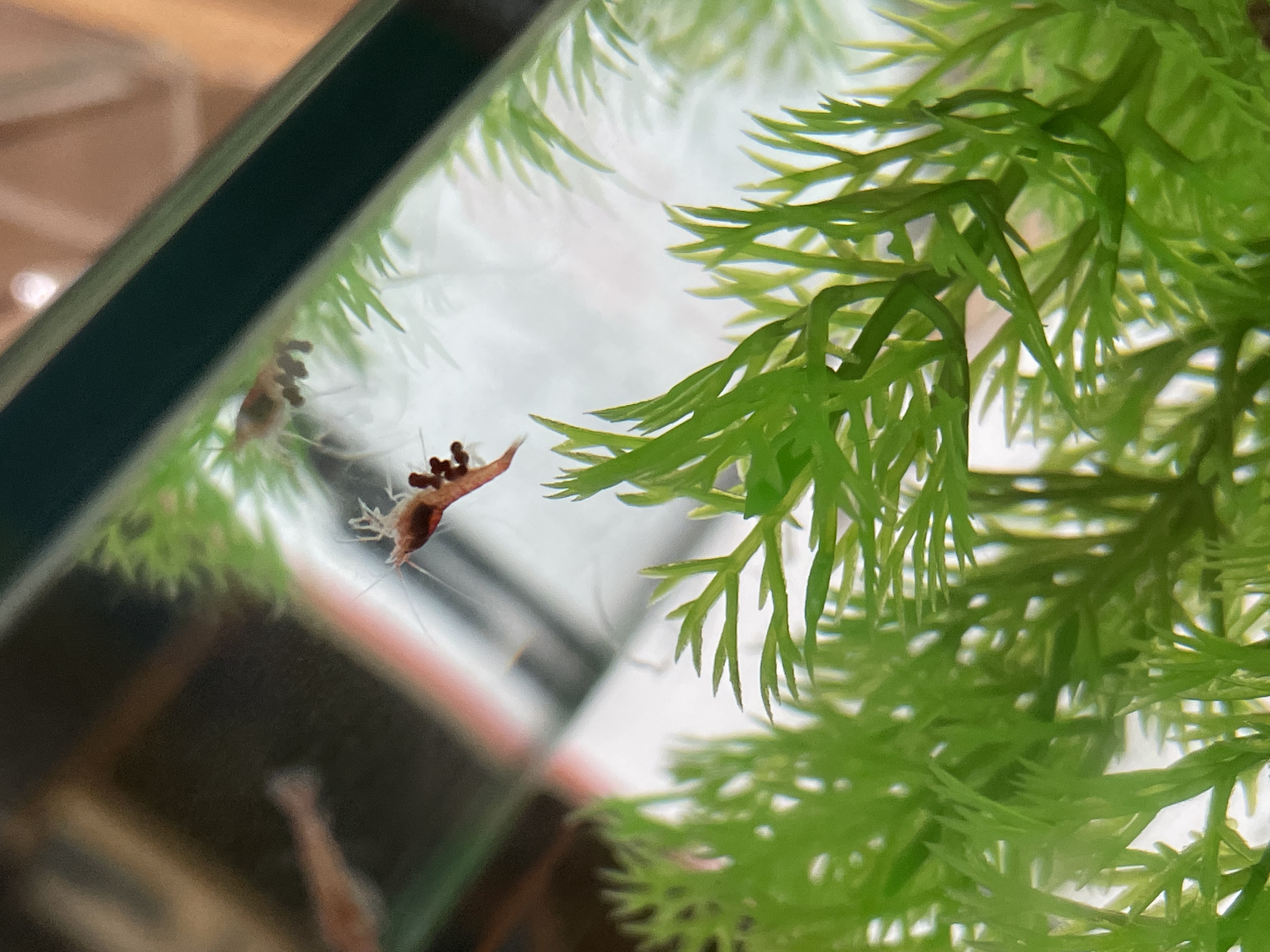 On a happier note - the tank at school is thriving! I have a berried female already!! So excited! That was way faster than I thought as it has only been two months since I set the tank up! Not the best pic but I attached it!