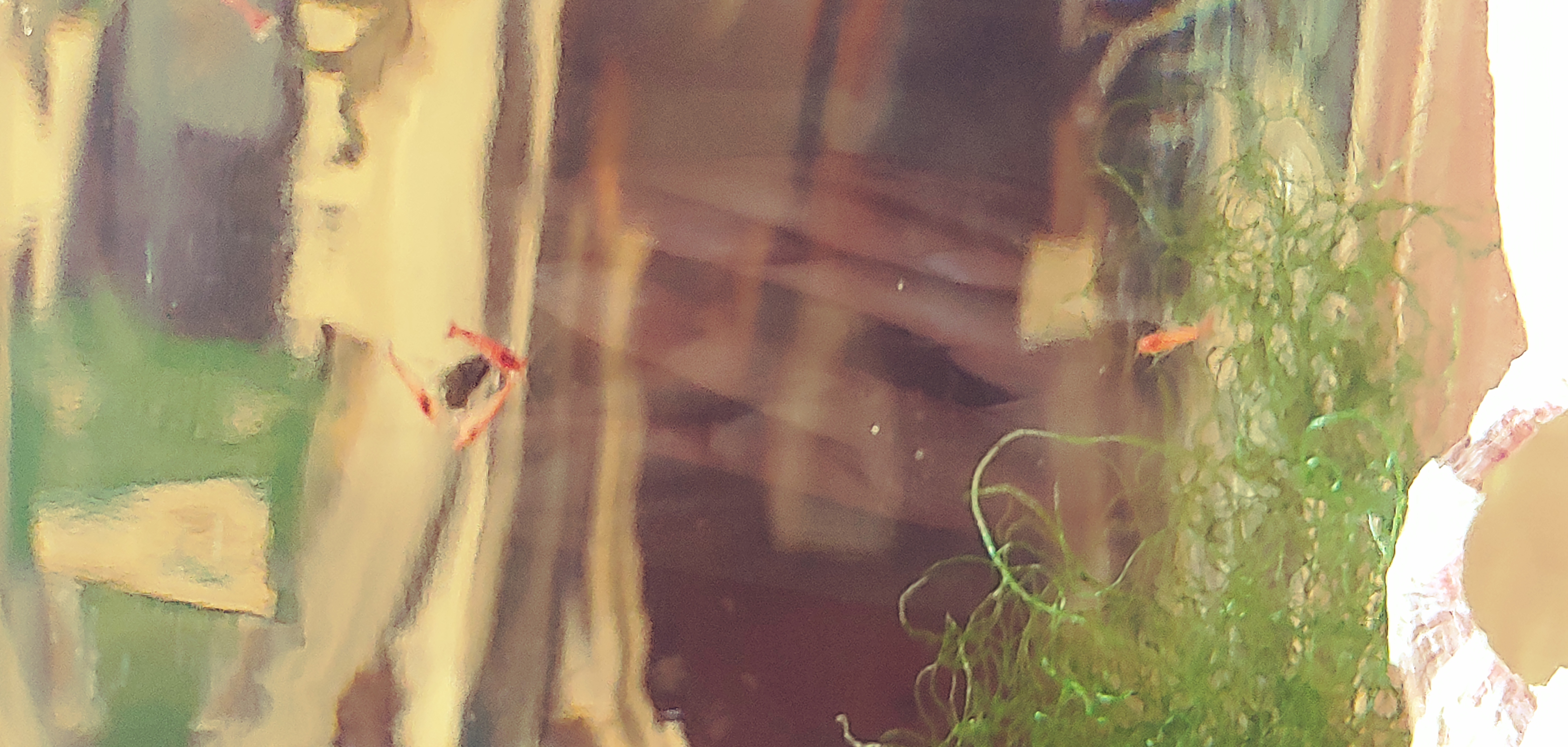 I got a good picture of biofilm in my tank as I did a little clean up with a toothbrush. This created a Thanksgiving feast for the snails and shrimpies. No need for another feeding just yet. I'm still enjoying the easiest pets ever!
