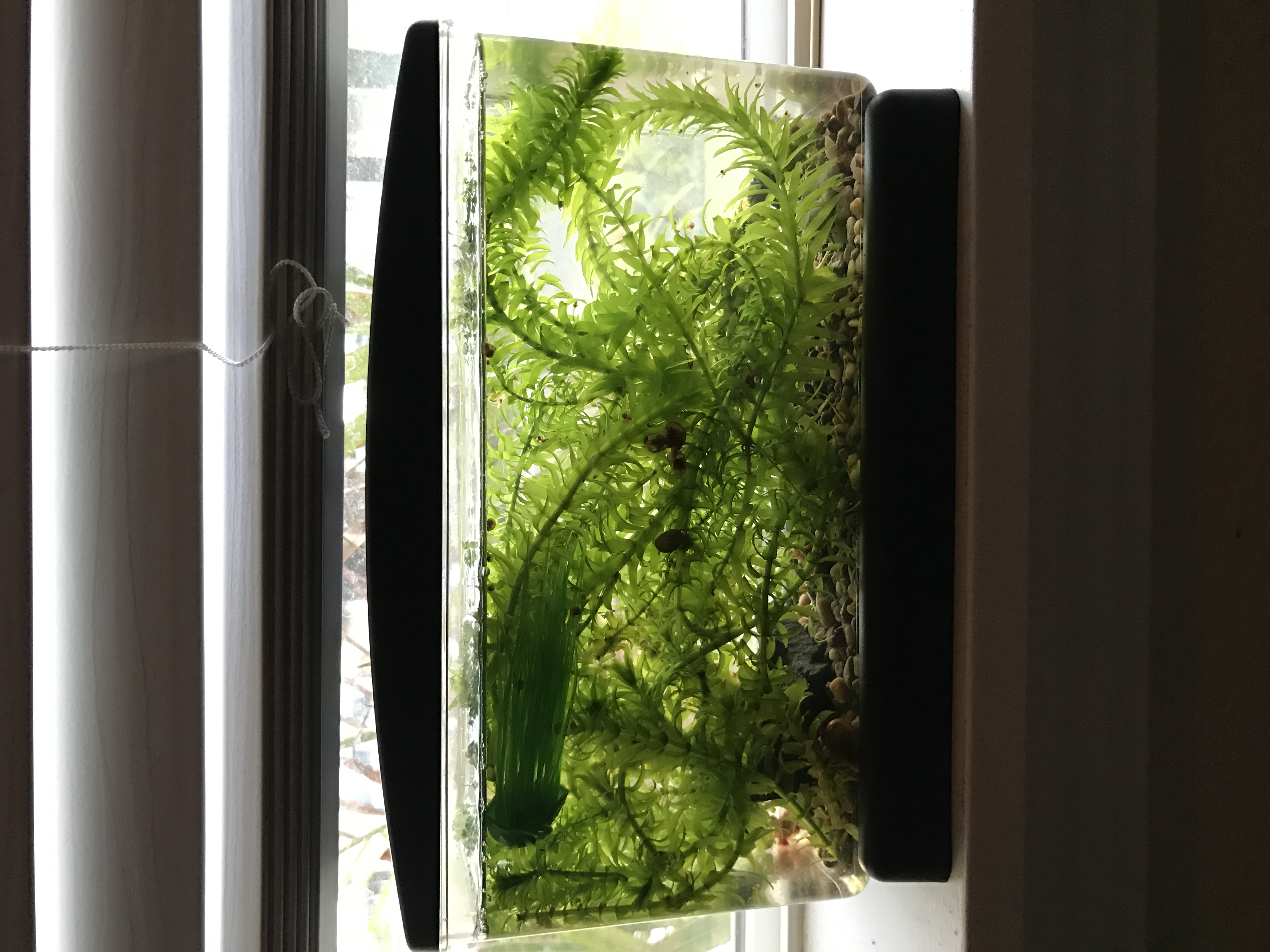 This is my "nursery" tank, no filter i've seen only 2 to 3 babies. I hope they are hiding, I watched about five or six hatch