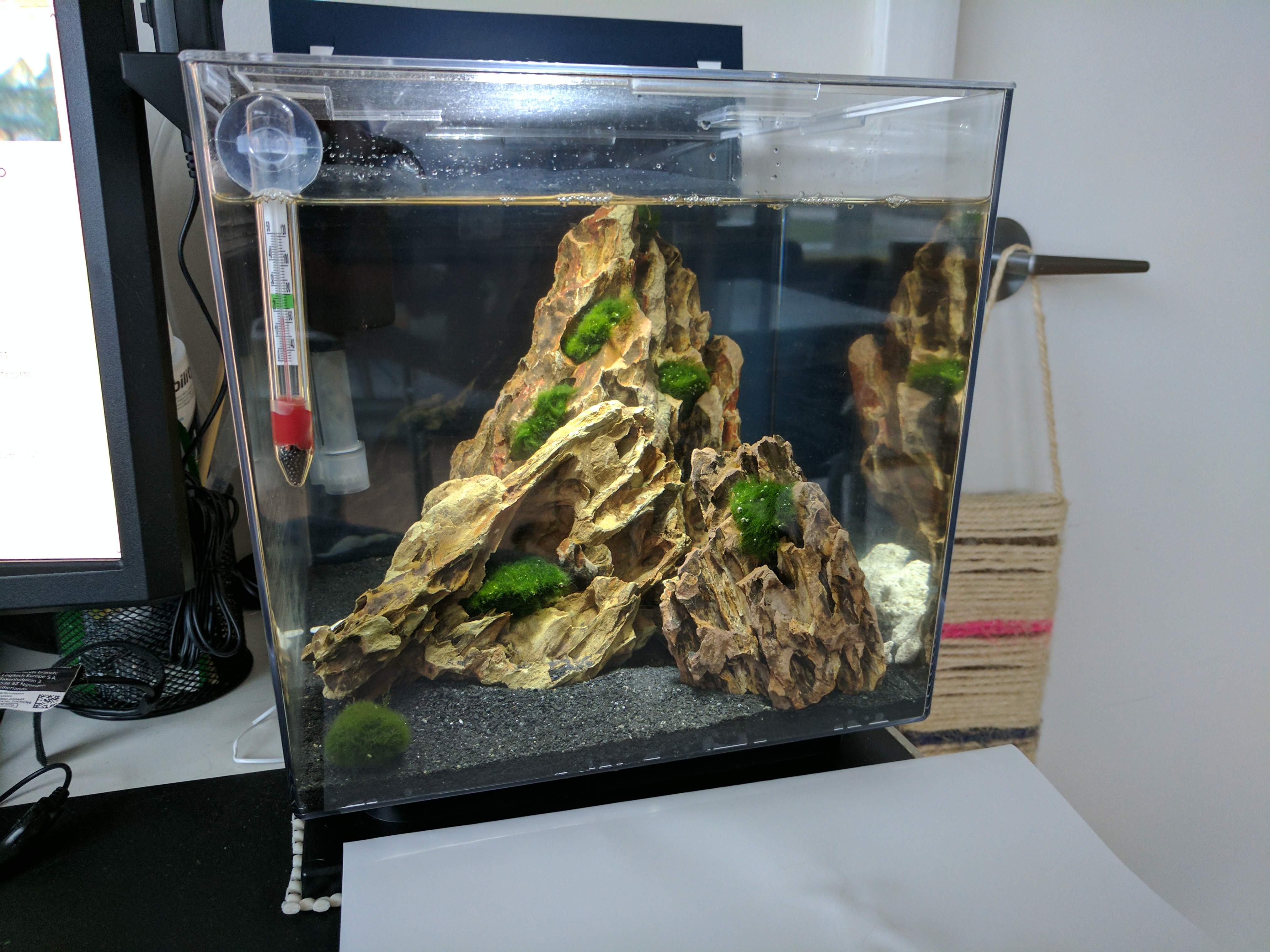 I'm really envious of the rocks you have got! The arrangement looks really good and I love the fact that it looks so much like a volcanic island and the marimo looks great on the rocks too! Would love to try something like that
