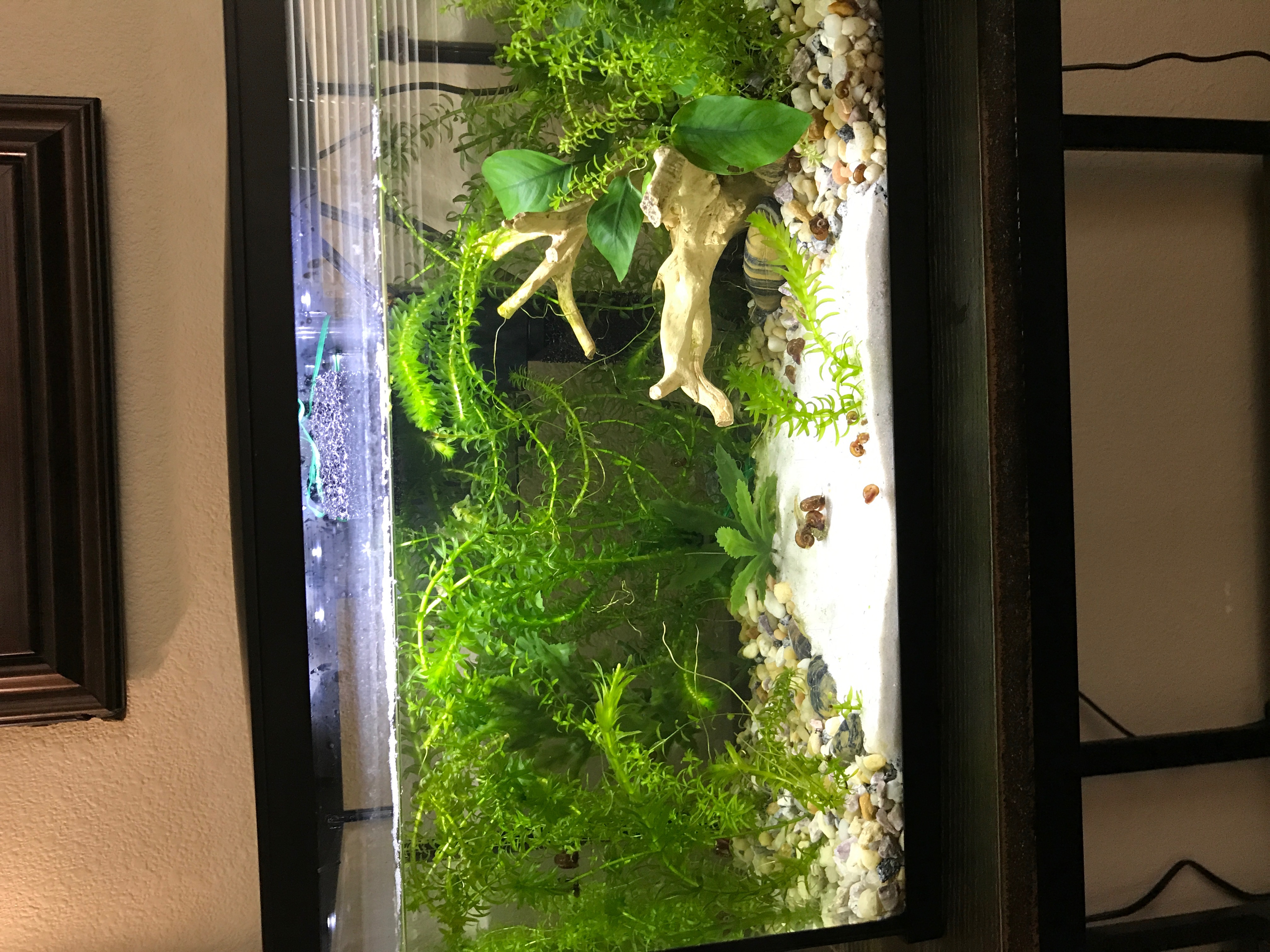 I'm in the process of moving my shrimp from a 1.5 gallon tank into a planted 5 gallon tank. I moved the adults and they are doing just fine, however I have lots of babies and I can't figure out a good way to get them. My old tank has a gravel bottom and they're so small they actually seem to go between the rocks