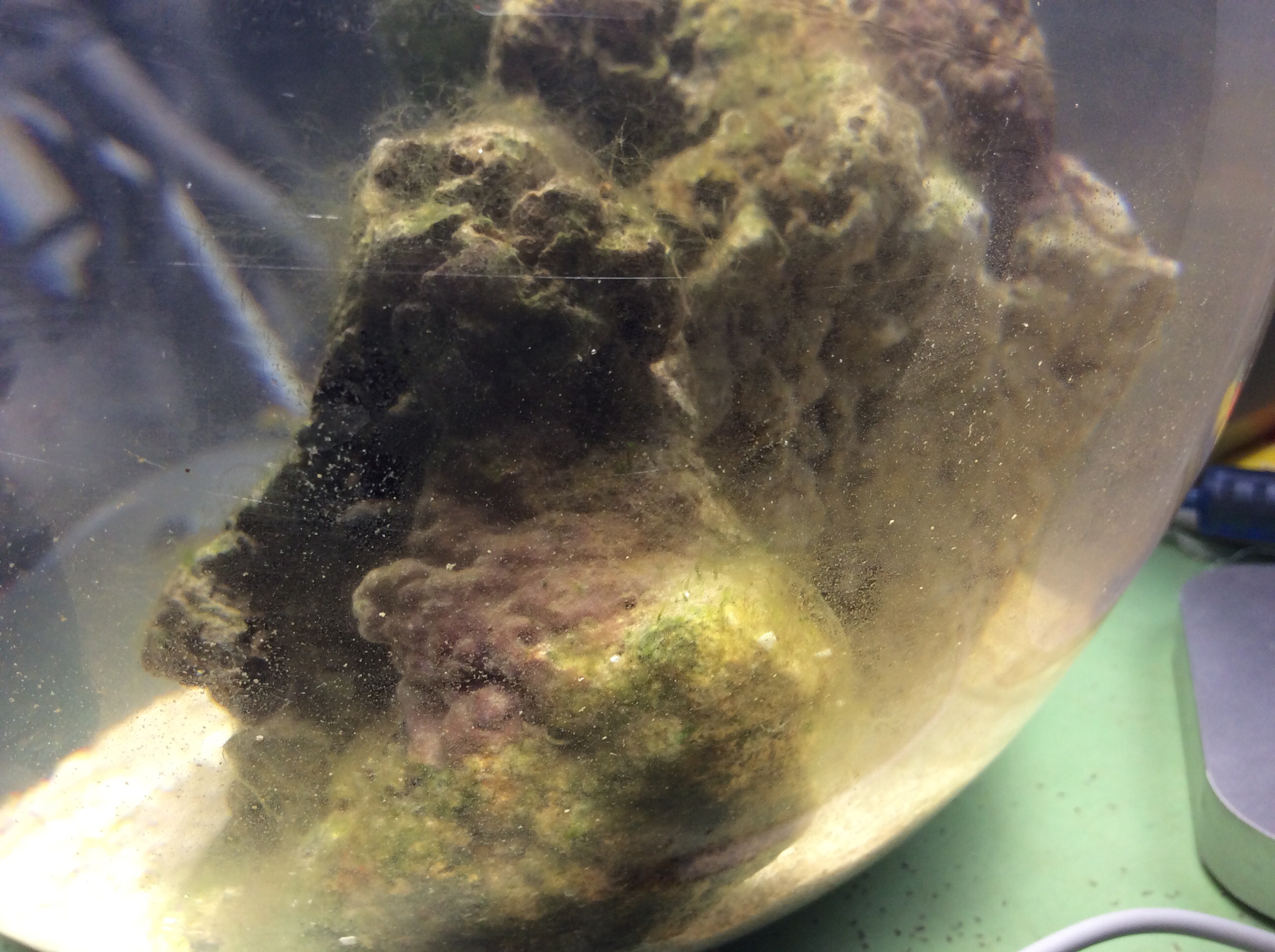 I actually did put three small Marimo balls in there a couple of days ago. They look good. Nice to have something living in the tank. I took around a day to acclimate them to the brackish water.