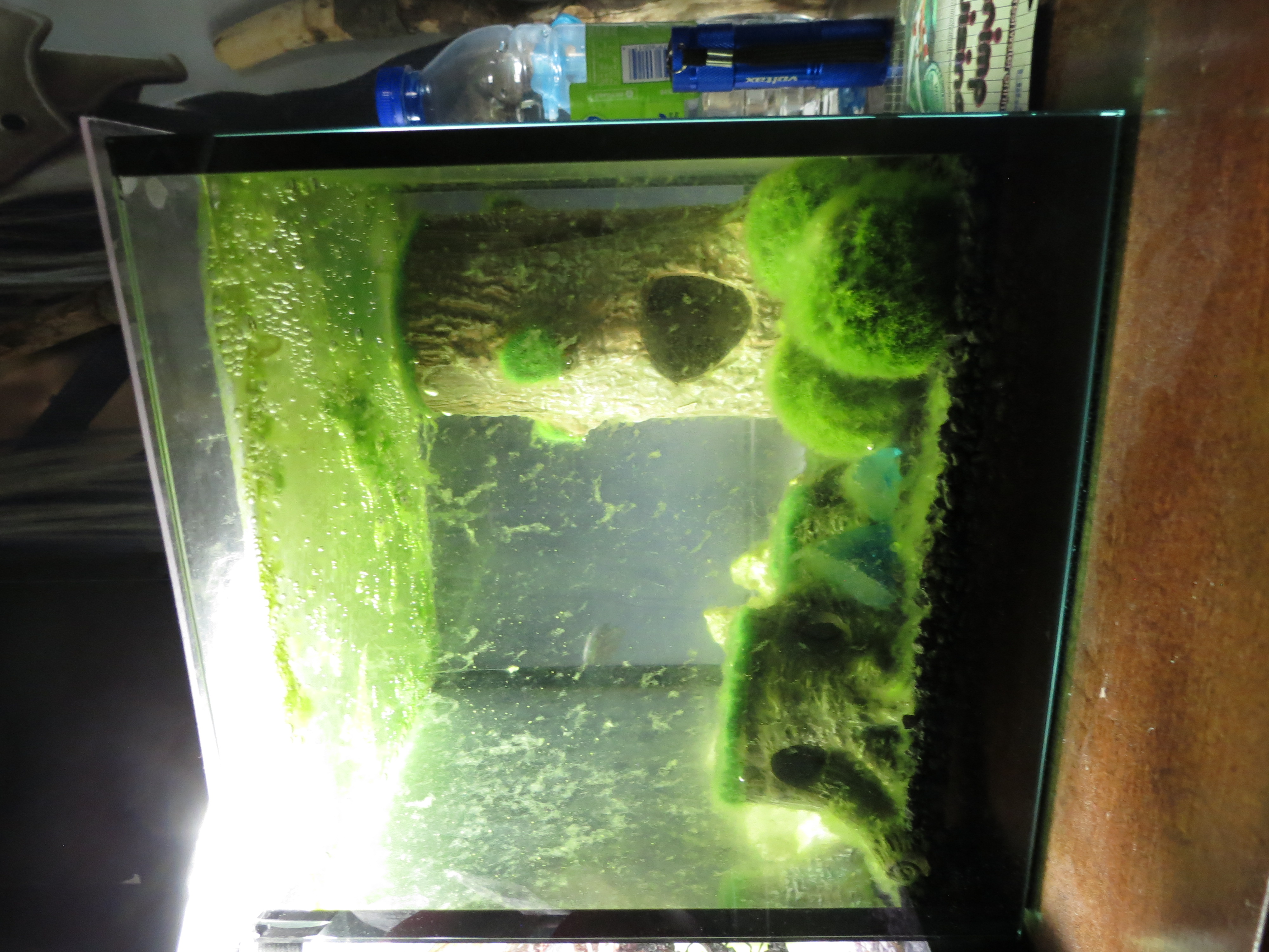 so, i have had my 2+ gal tank and 3 moss balls just sitting there for 3 months and algae started to grow but now its taken over. i know that having algae is recommended but i cant imagine what it will be like in 3 more months. the moss balls are doing surprisingly well.