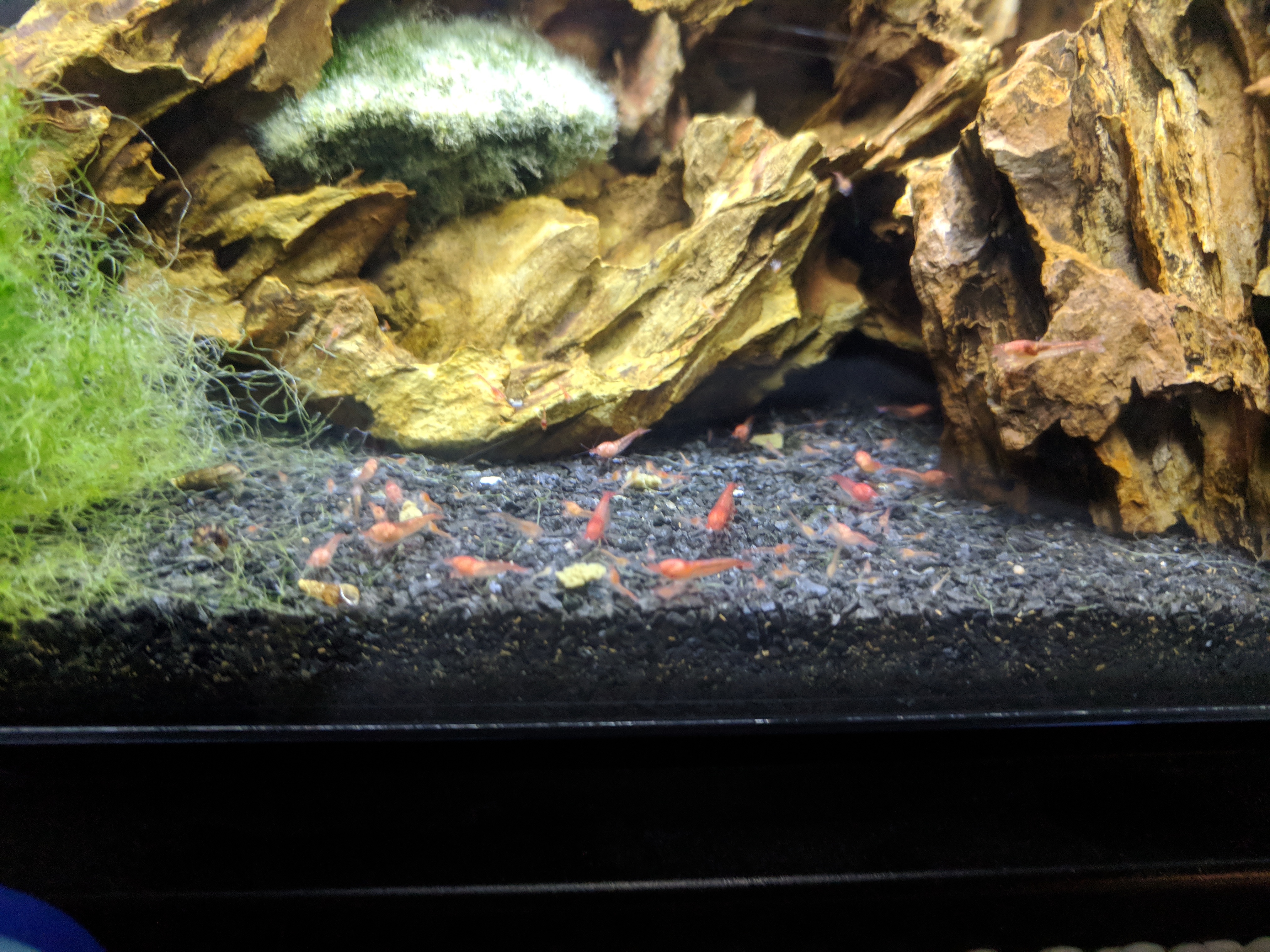 Update on the large tank.. I'm still getting berried shrimp constantly after the first ones I'm April.. pretty sure I've gone from the original 20 shrimp to over 80 now.. The small tank is also doing well the guys are turning red but are a lot more timid probably cause they're all still pretty young.