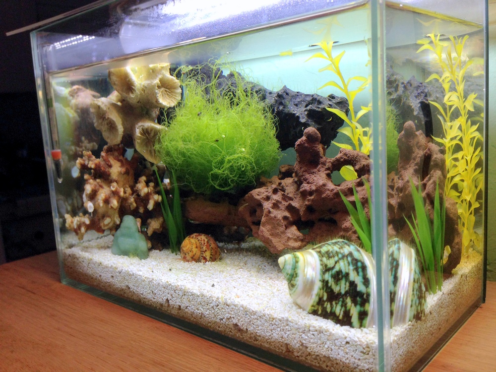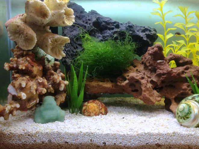 Here it is after implementing Petshrimp's macroalgae. Coincidentally, the landscaping provided a perfect little elevated nook for it...