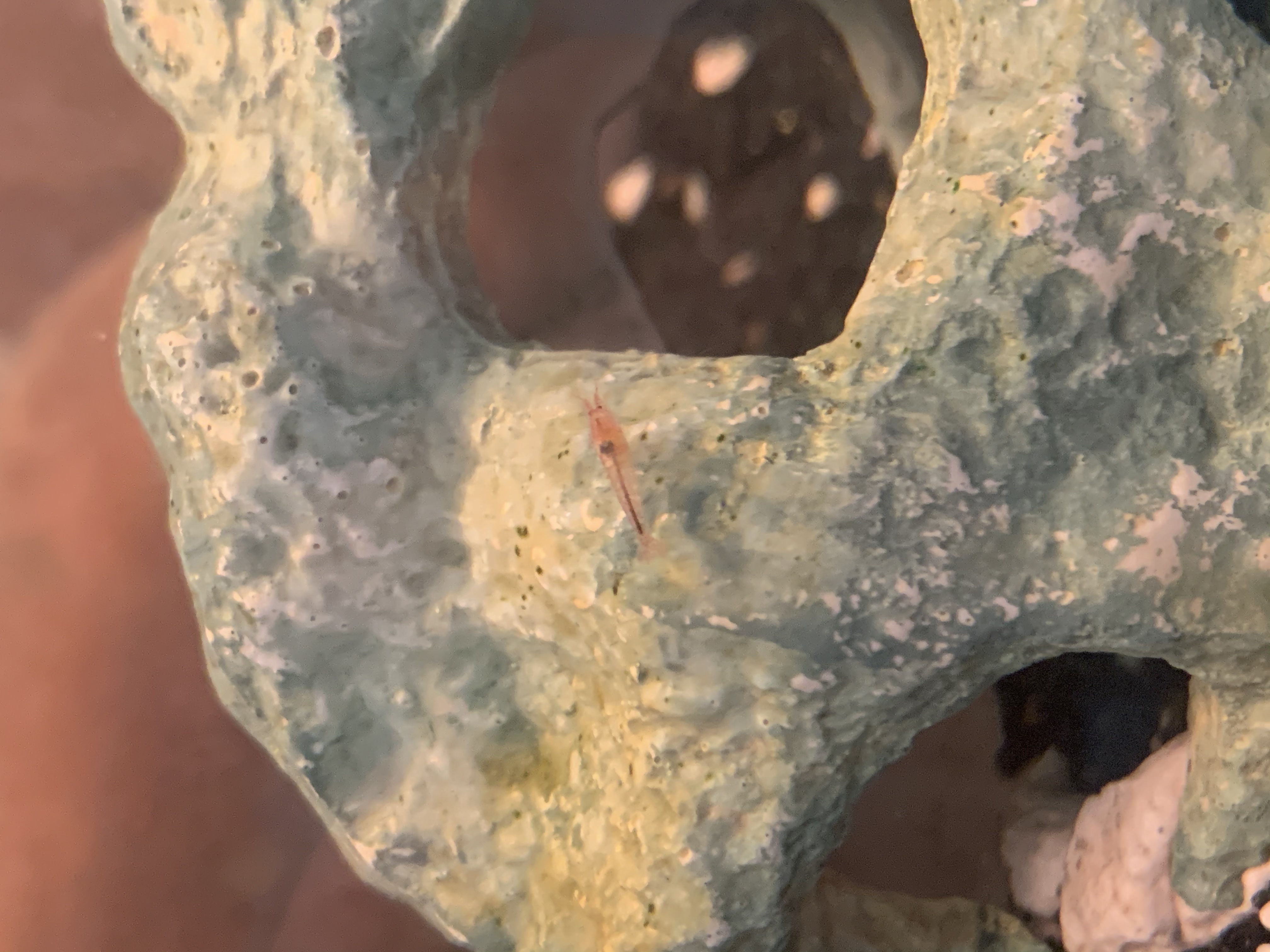 Anyways, 2 days ago, I went to turn off their light for the night, and I noticed that the one shrimp had a visible dark circle-like spot on its back. It's never been there before, and about a week or so ago, I found a molt in the tank. I read that they normally breed after the female molts. I was just wondering what this spot was, and if it's not eggs, then what is it? I took the picture on my phone, so if I need to upload a better one, I can try.