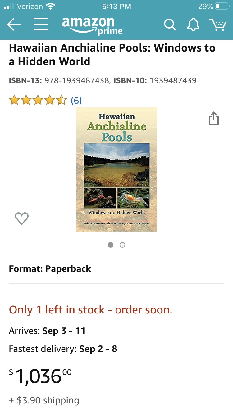 DrKirk wrote: Sat Aug 22, 2020 5:32 pm You can buy the book, Hawaiian Anchialine Pools, directly from the publisher: $13.95. Highly recommend it!