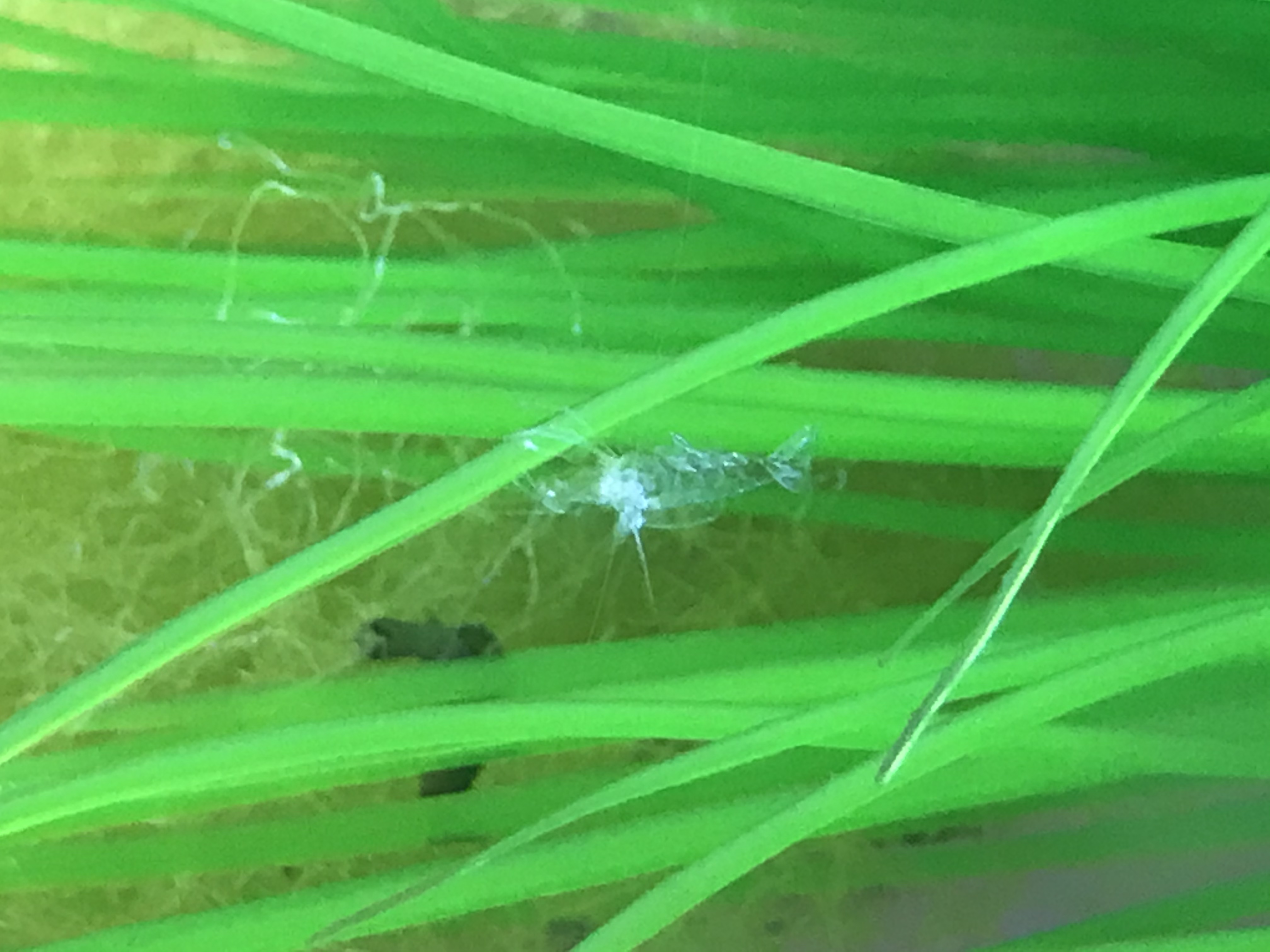 The shrimp released her larva and I now have 10 floaters hanging out ......