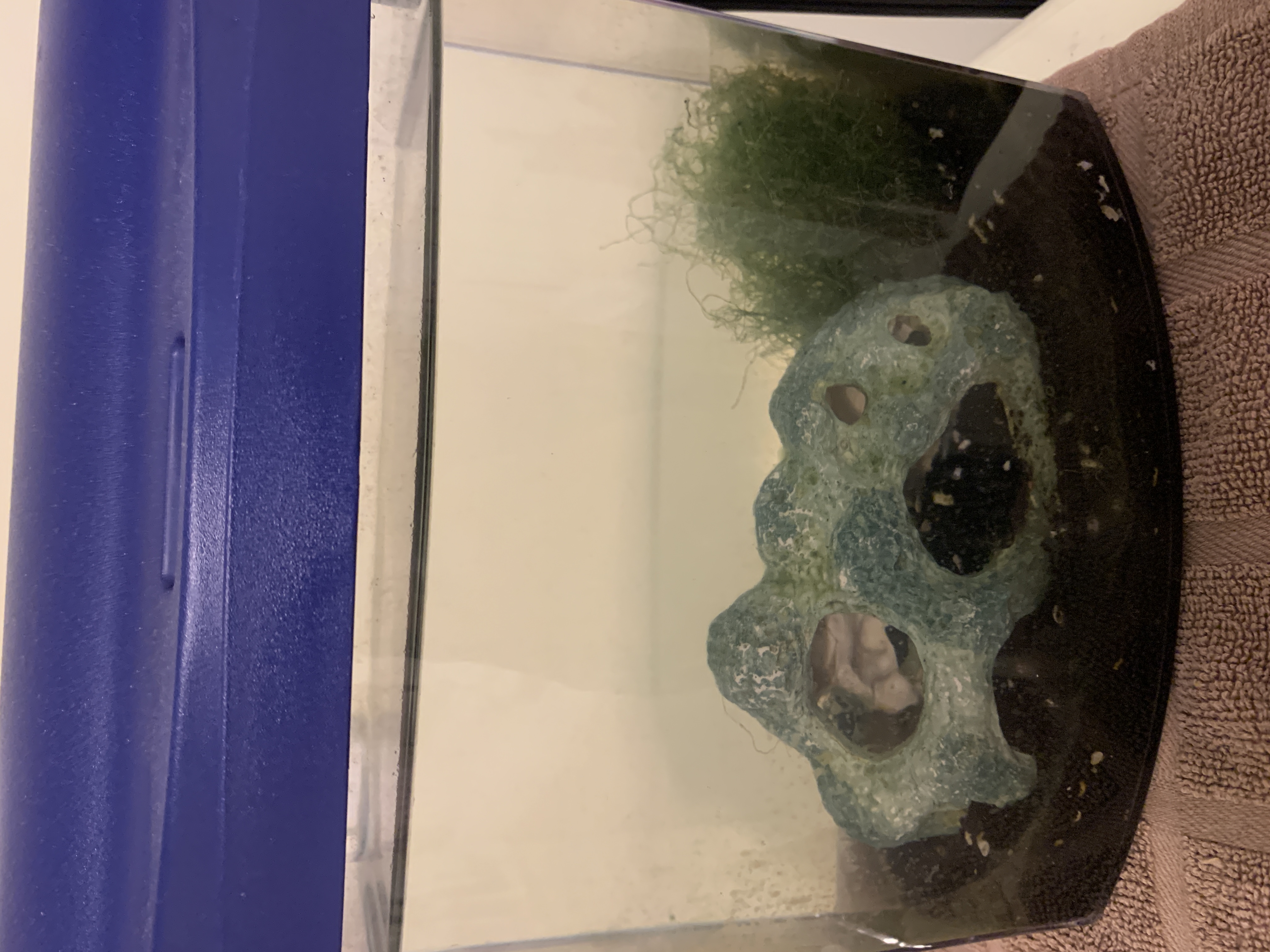 Today, I turned on my shrimp light this morning as usual, and my one shrimp was on the glass and seemed completely fine. A few minutes later, he swam to the top of the water. When he swam back down, it looked like he was holding onto something. I don't know how to describe it; it just looked like he was holding on to some sort of clear object. He swam back down with it, and began swimming on his side. Sometimes he sits on his back and flails his legs. I thought that maybe he's trying to molt, and that the clear piece it looked like he was hanging on to was his molt, but then I read that shrimp usually hide when molting and that they stay still. He went into the cave for a bit where I saw him flailing around through the holes in it, but now he's back on the outside of the cave flailing on his back.