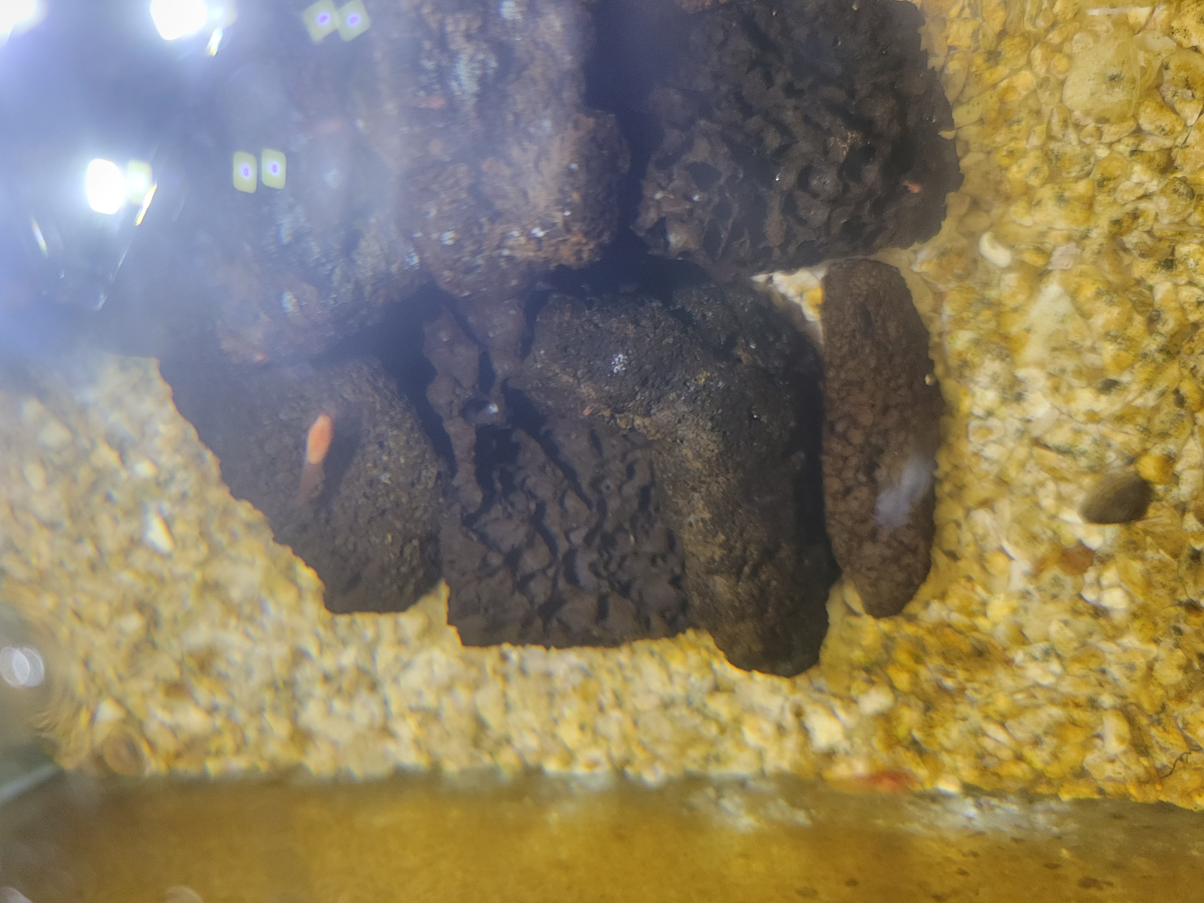 Ok I managed to take a picture of 2 of the 3 orange supershrimp adults. A second before I took the picture one hid within the lava rocks but I think it's tail is barely visible if you look hard enough. Sorry for the rather low quality, I'm using a Samsung Galaxy S21+ but even with several cameras can't focus enough to take higher quality images.
